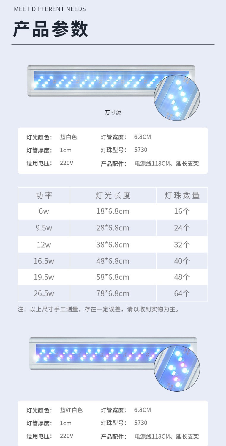 물고기 탱크 램프 슈퍼 밝은 특수 스펙트럼 물 램프 폭발 램프 열대 우림 조경 색상 Zeng Yan 물고기 램프 소스 공장 도매