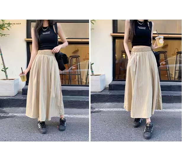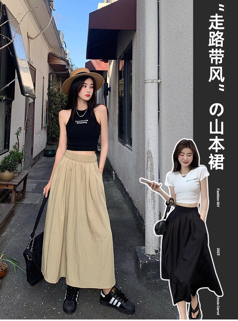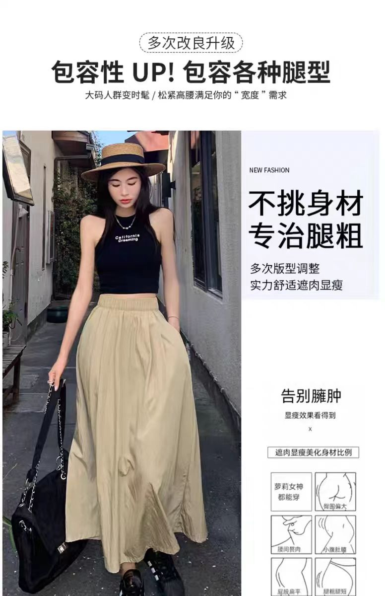 스커트 여성의 여름 일본 질감 주름 높은 허리 게으른 바람 우산 스커트 작은 무릎 큰 스윙스토어 가기