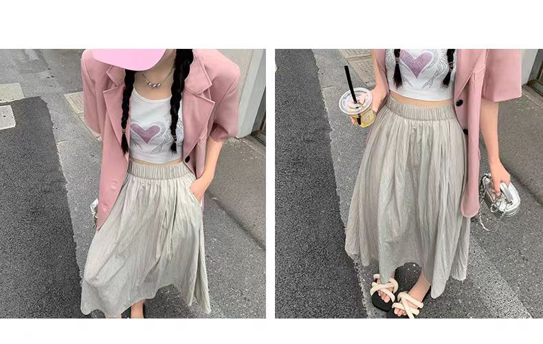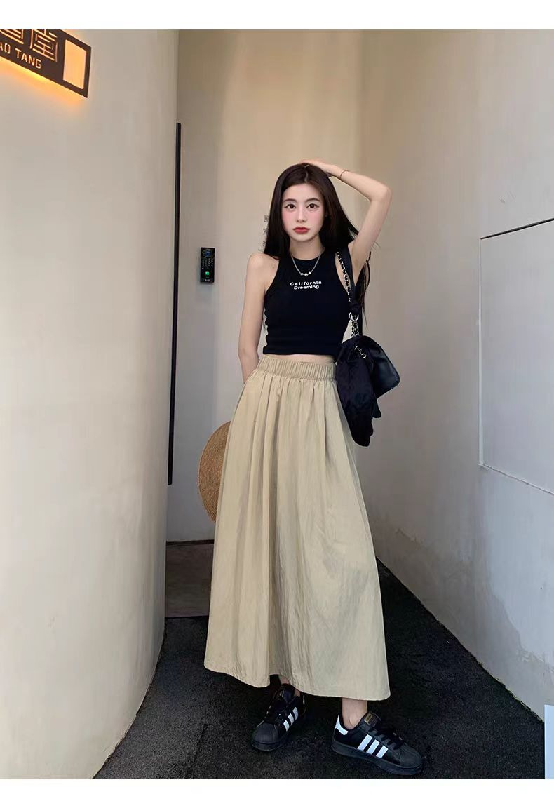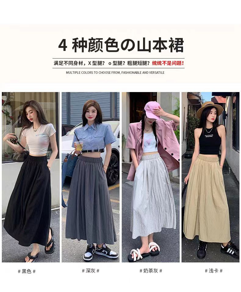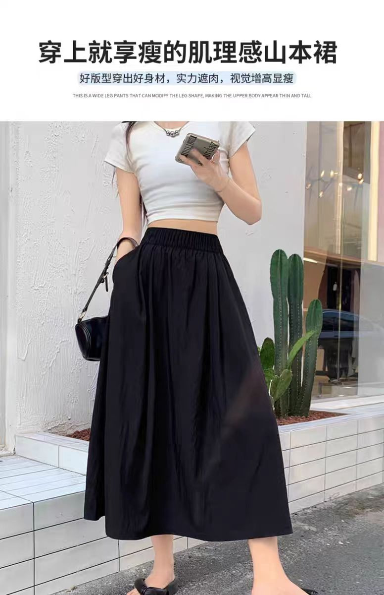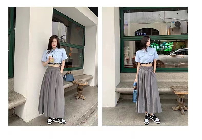 스커트 여성의 여름 일본 질감 주름 높은 허리 게으른 바람 우산 스커트 작은 무릎 큰 스윙