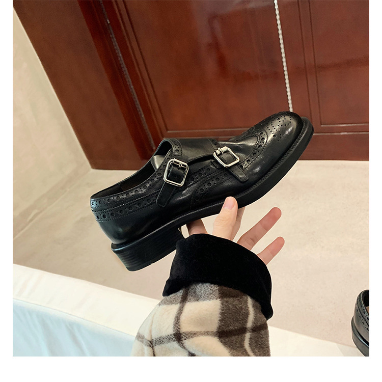 정품 가죽 포도 어머니 수축 더블 버클 영국 싱글 레이어 신발 둥근 발가락 두꺼운 굽 가죽 신발 여성용 말 가죽 브록 부드러운 바닥