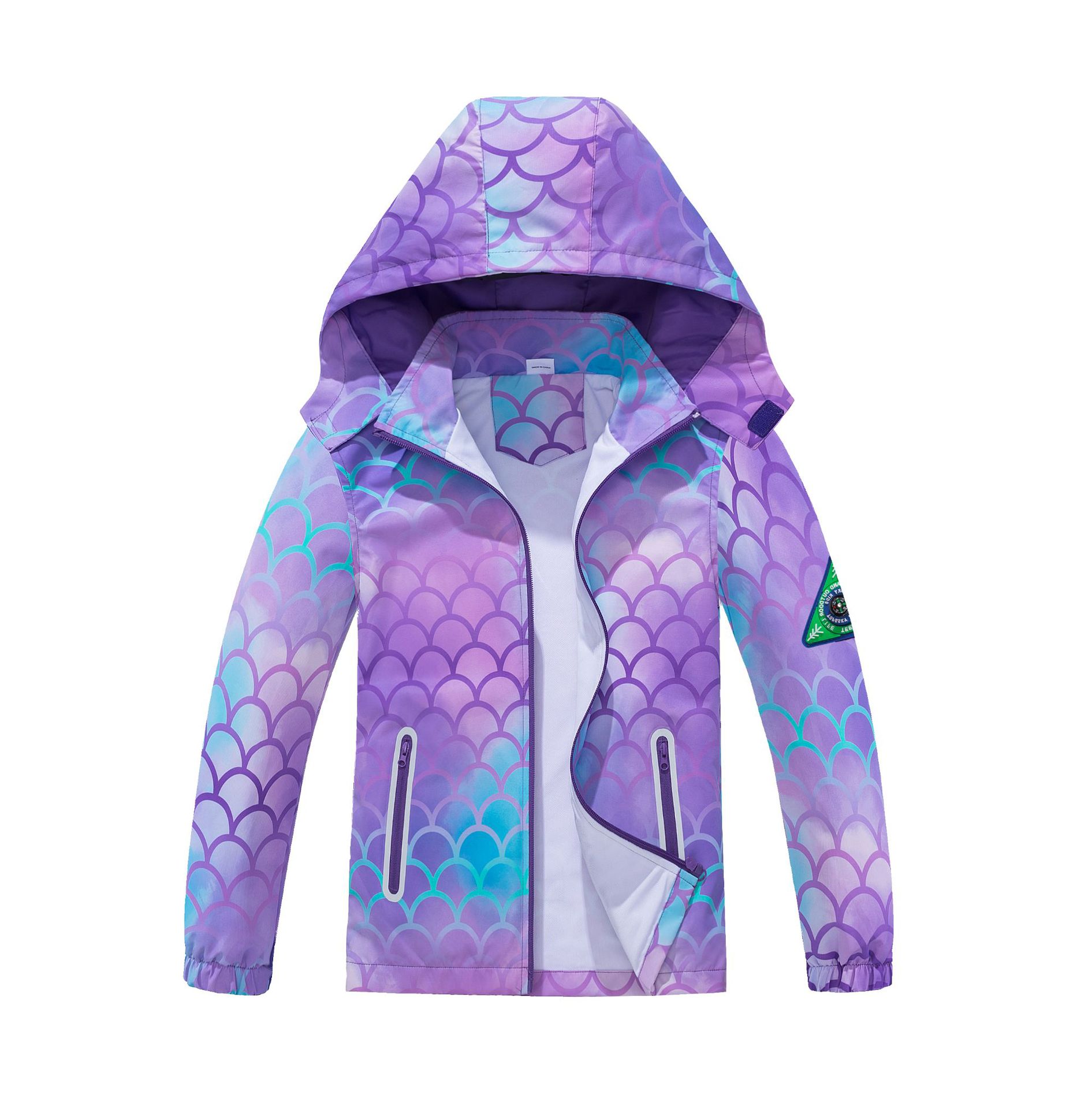 봄과 가을 새로운 소녀의 물고기 규모 인쇄 귀여운 야외 방수 자켓 통기성 오프 모자 자켓 지퍼 셔츠