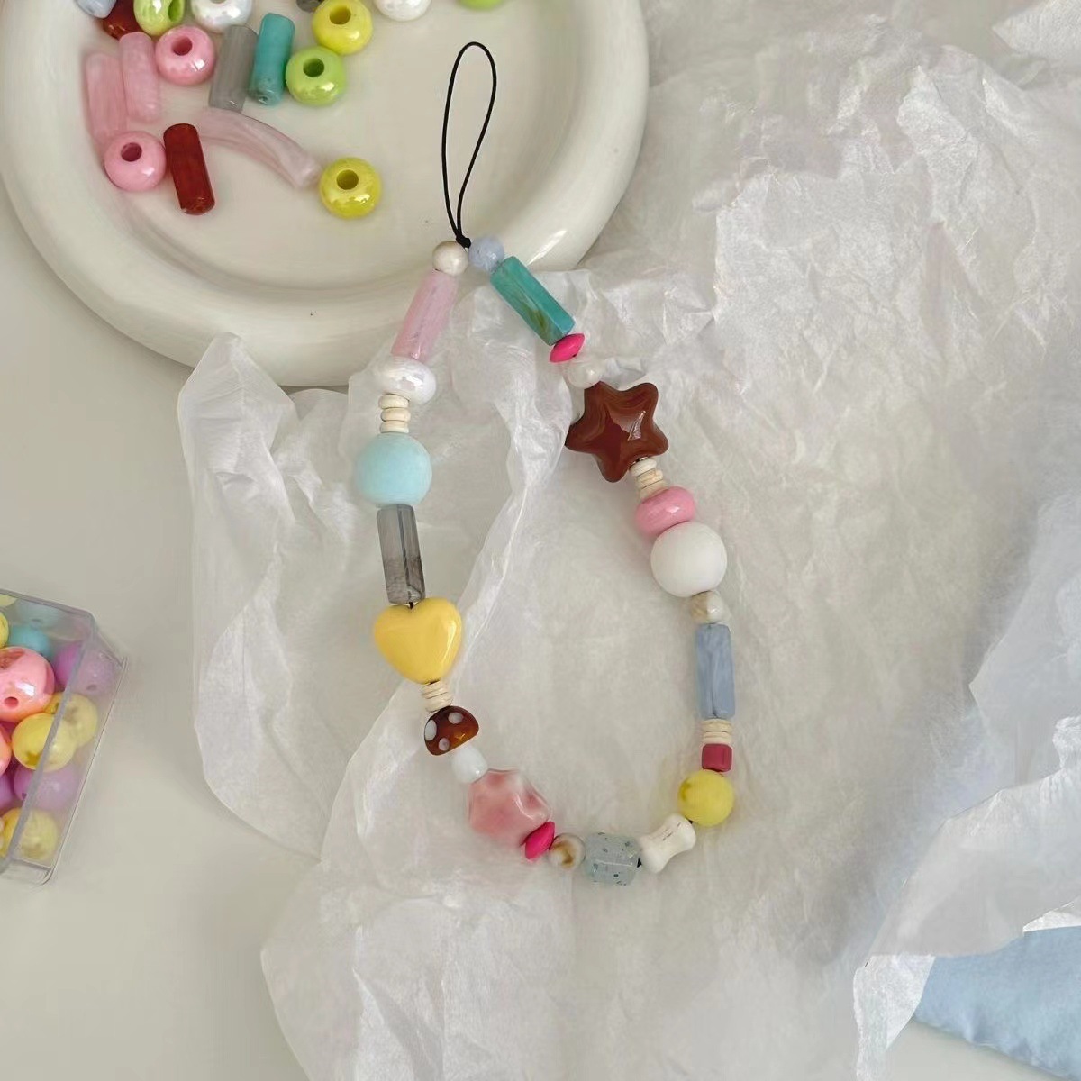 Ins 캔디 컬러 오리지널 비즈 DIY 수제 비즈 휴대 전화 케이스 끈 카드 CCD 카메라 매달려 장식품 손실 방지 체인스토어 가기