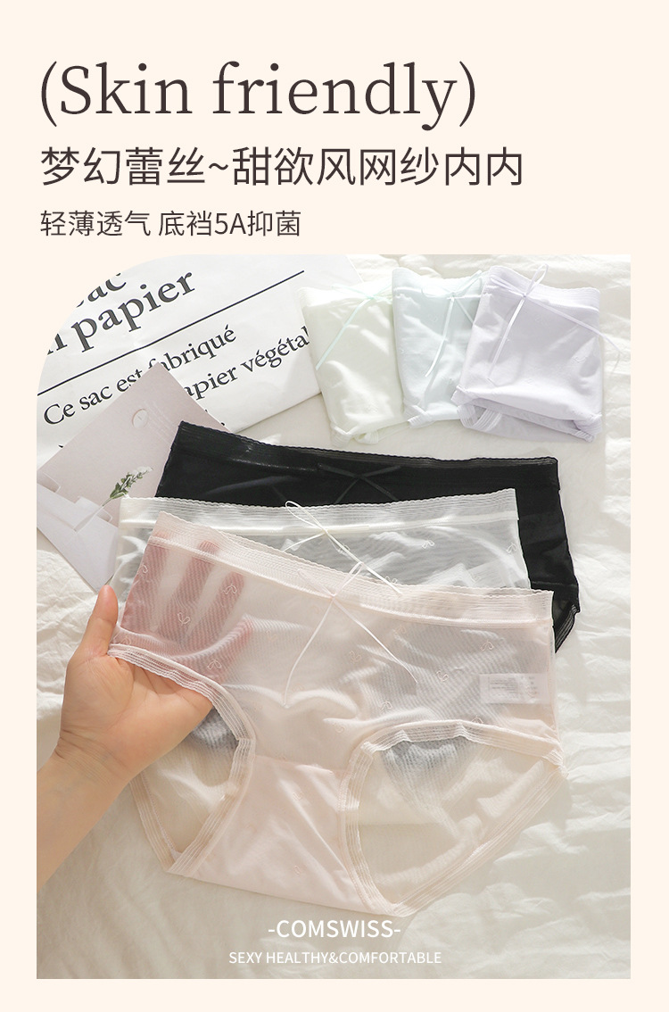 24 새로운 레이스 속옷 초박형 여름 순수한면 7A 박테리아 클로 치 편안한 중간 허리 높은 탄성 빠른 건조 속옷