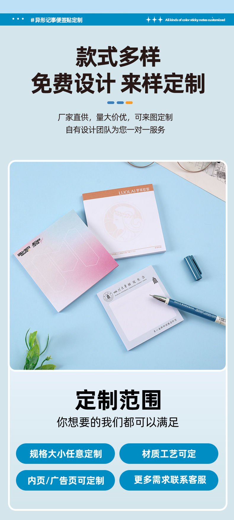 스티커 메모 광고 맞춤형 눈물 끈적 끈적한 메모 책 사용자 정의 로고 패턴 노트 종이 편지 용지
