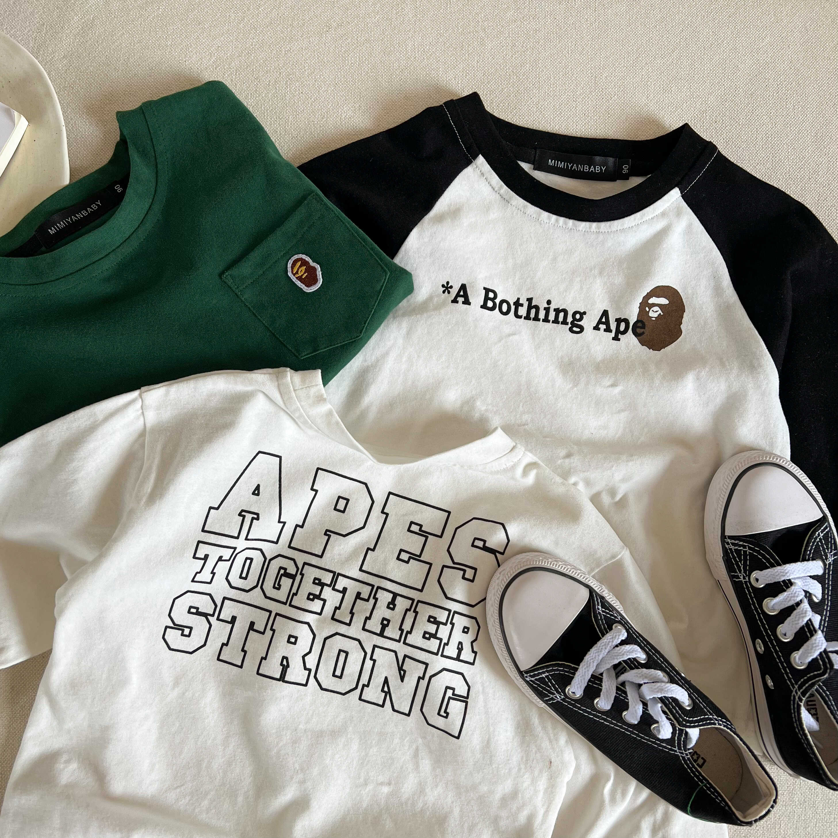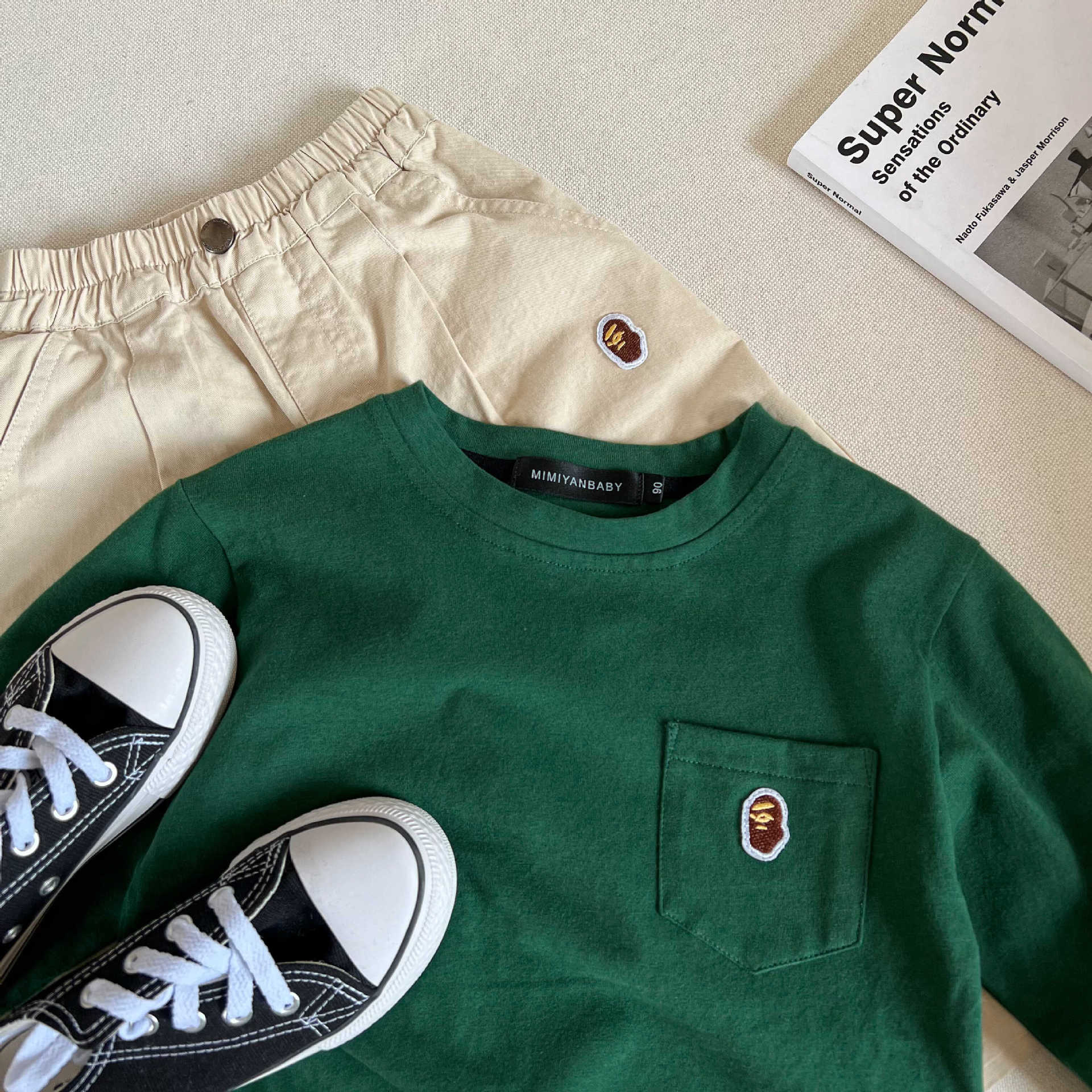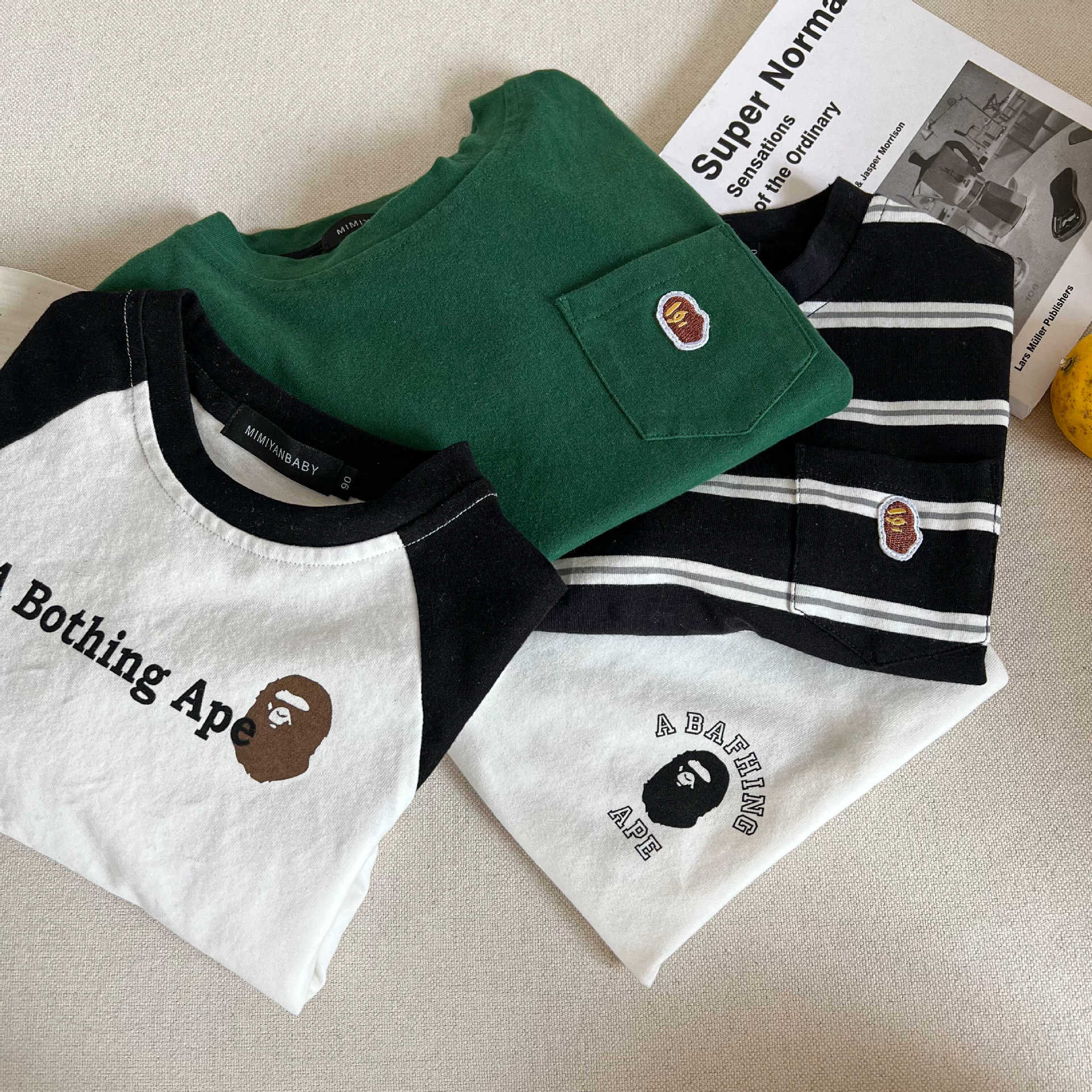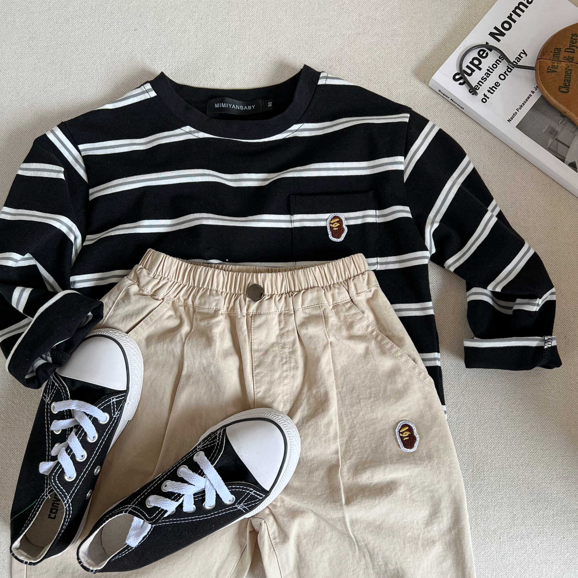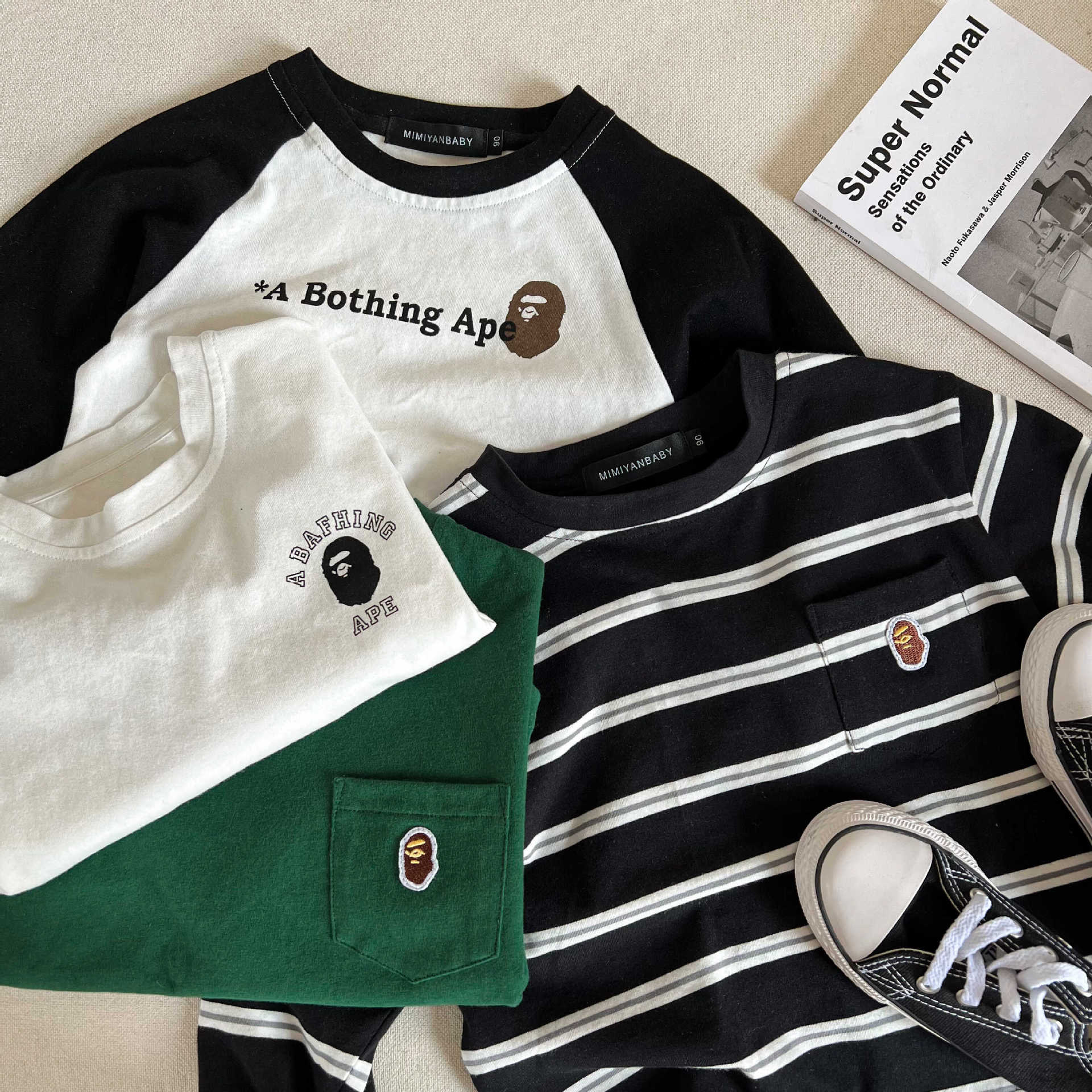 2024 가을 어린이 긴팔 티셔츠 남학생과 여학생 일본식 유행 브랜드 T 아기의 편지 줄무늬 룰란베이스 셔츠스토어 가기