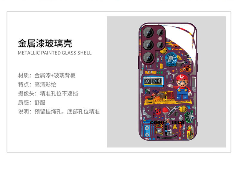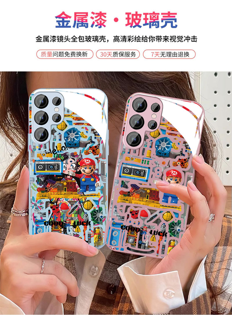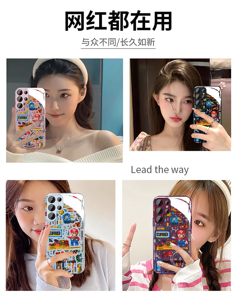 삼성 S24ULTRA 전화 케이스 s23 유리 거울 s22 새로운 A55 순 빨간색 A54 할로우 마리오