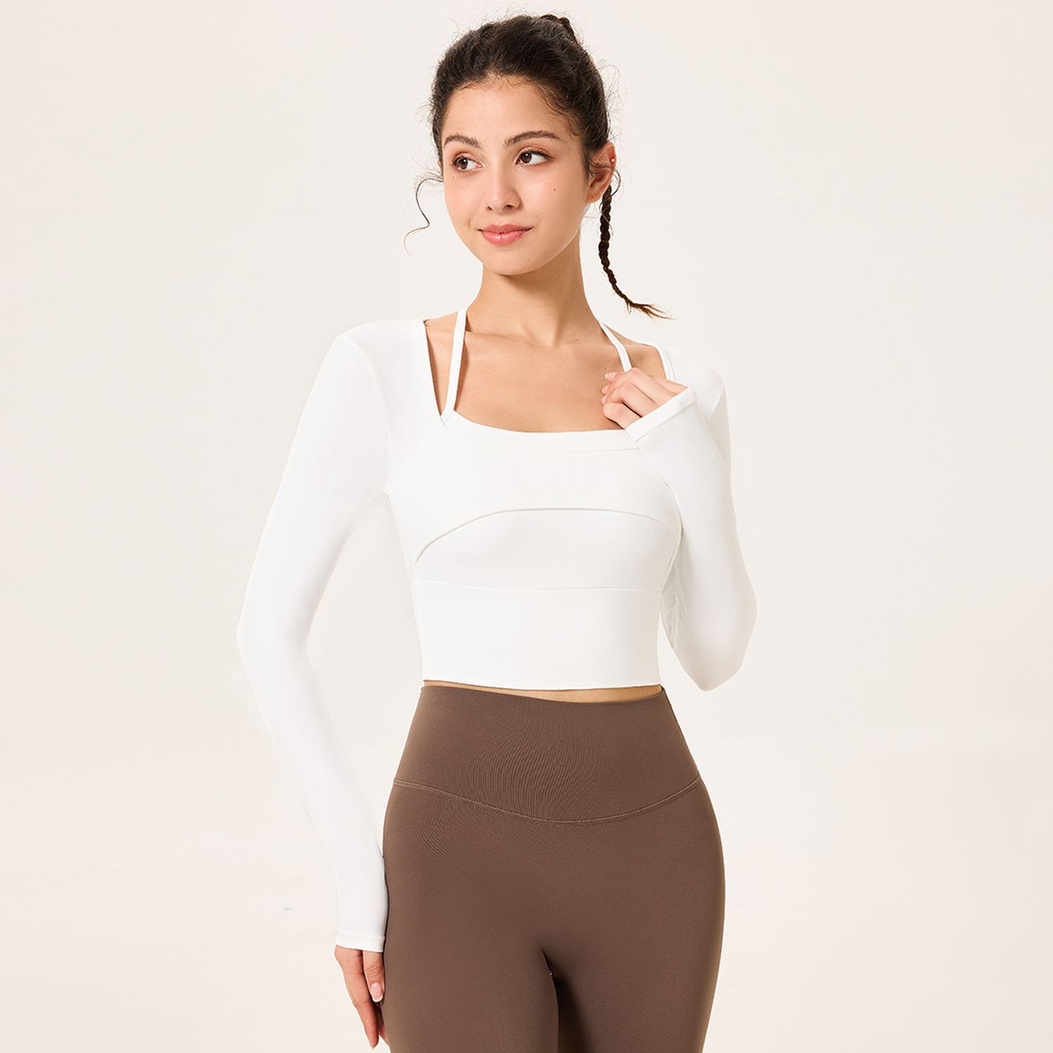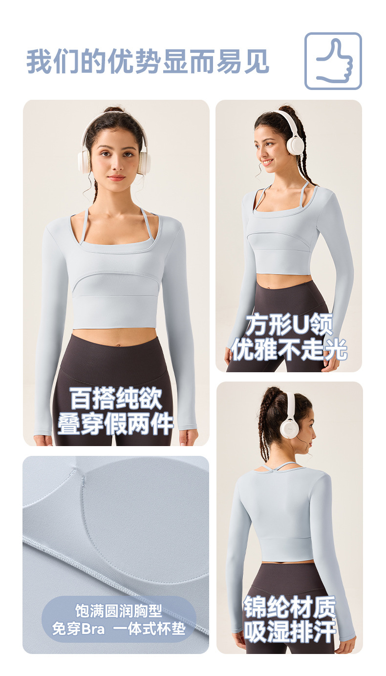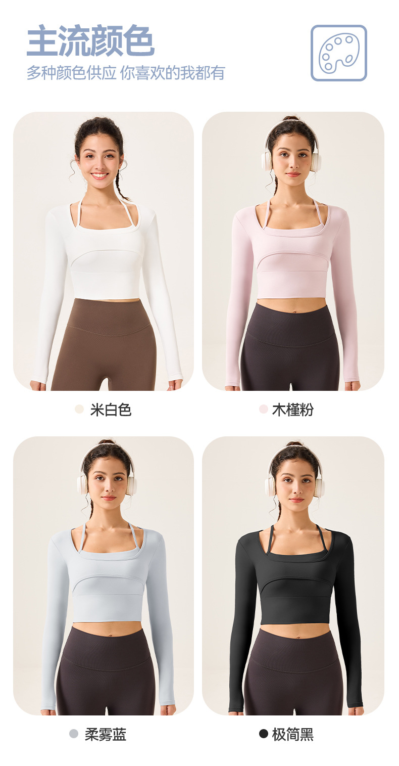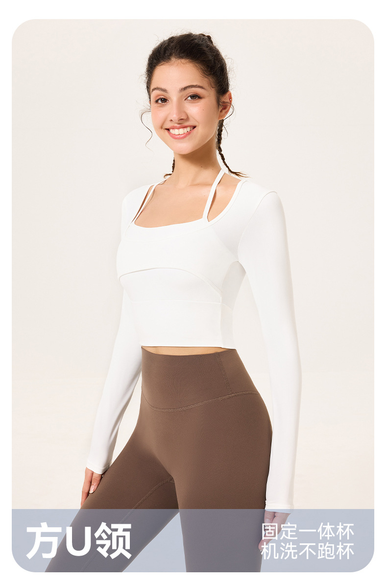 가슴 패드가 있는 여성용 요가복, 슬림핏 스포츠 탑, 고급스러운 긴팔 티셔츠, 필라테스 트레이닝 피트니스복스토어 가기