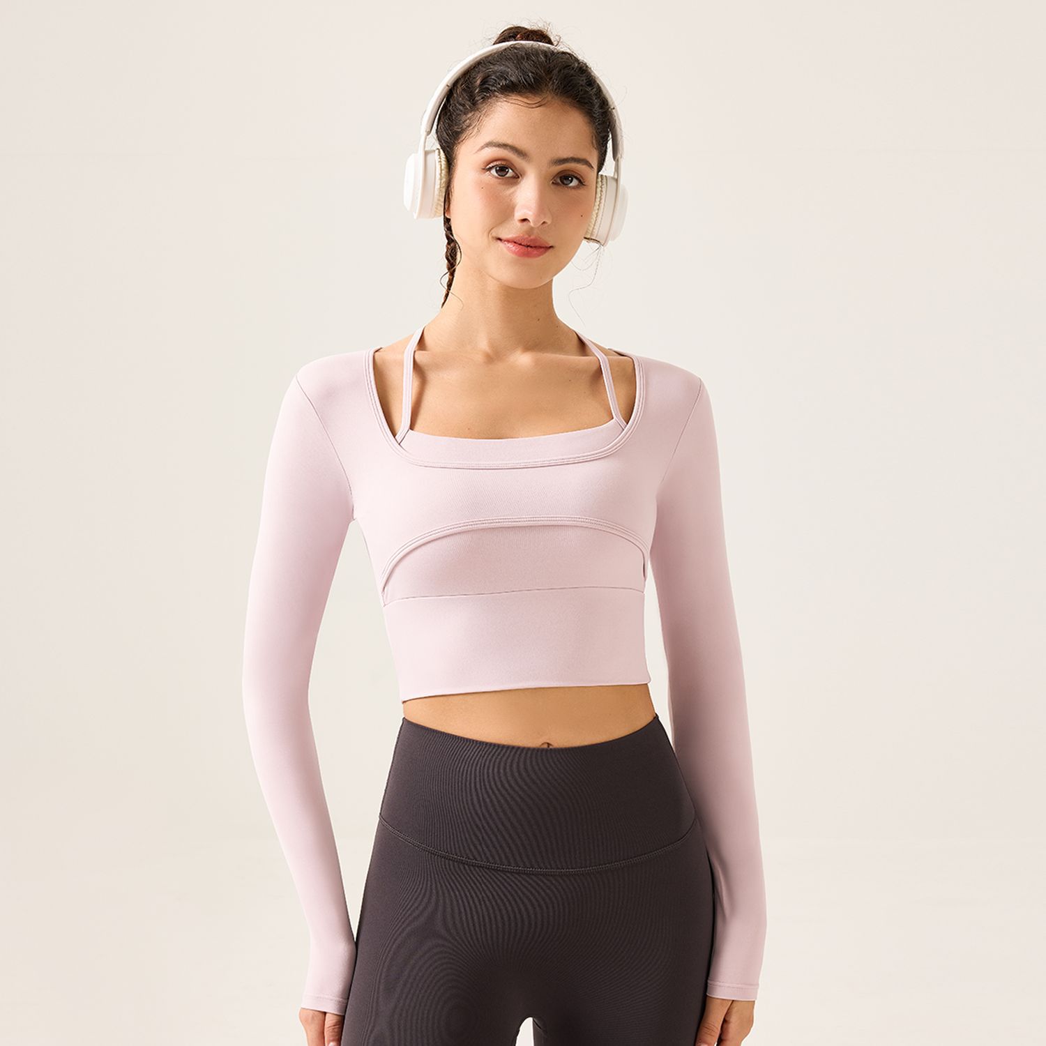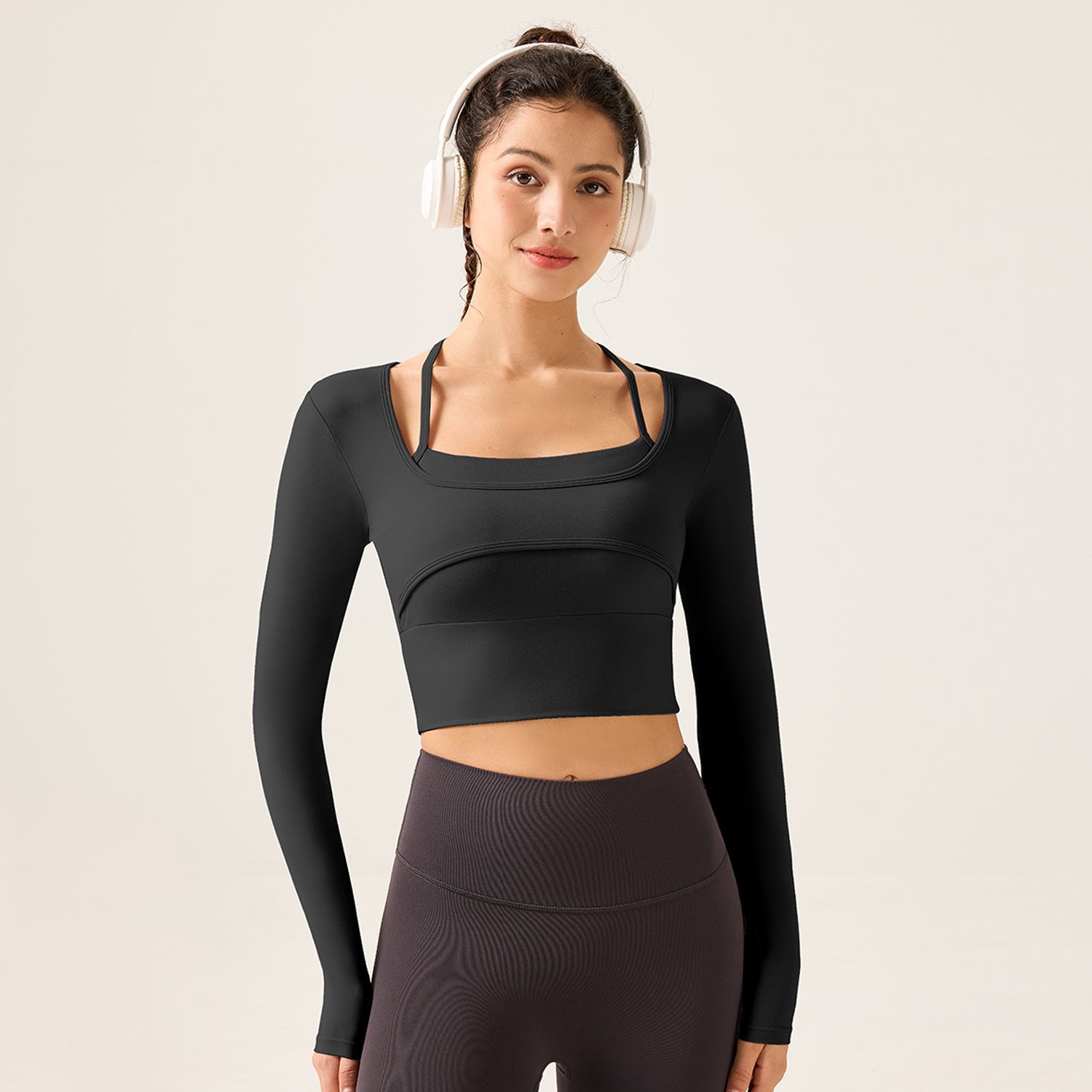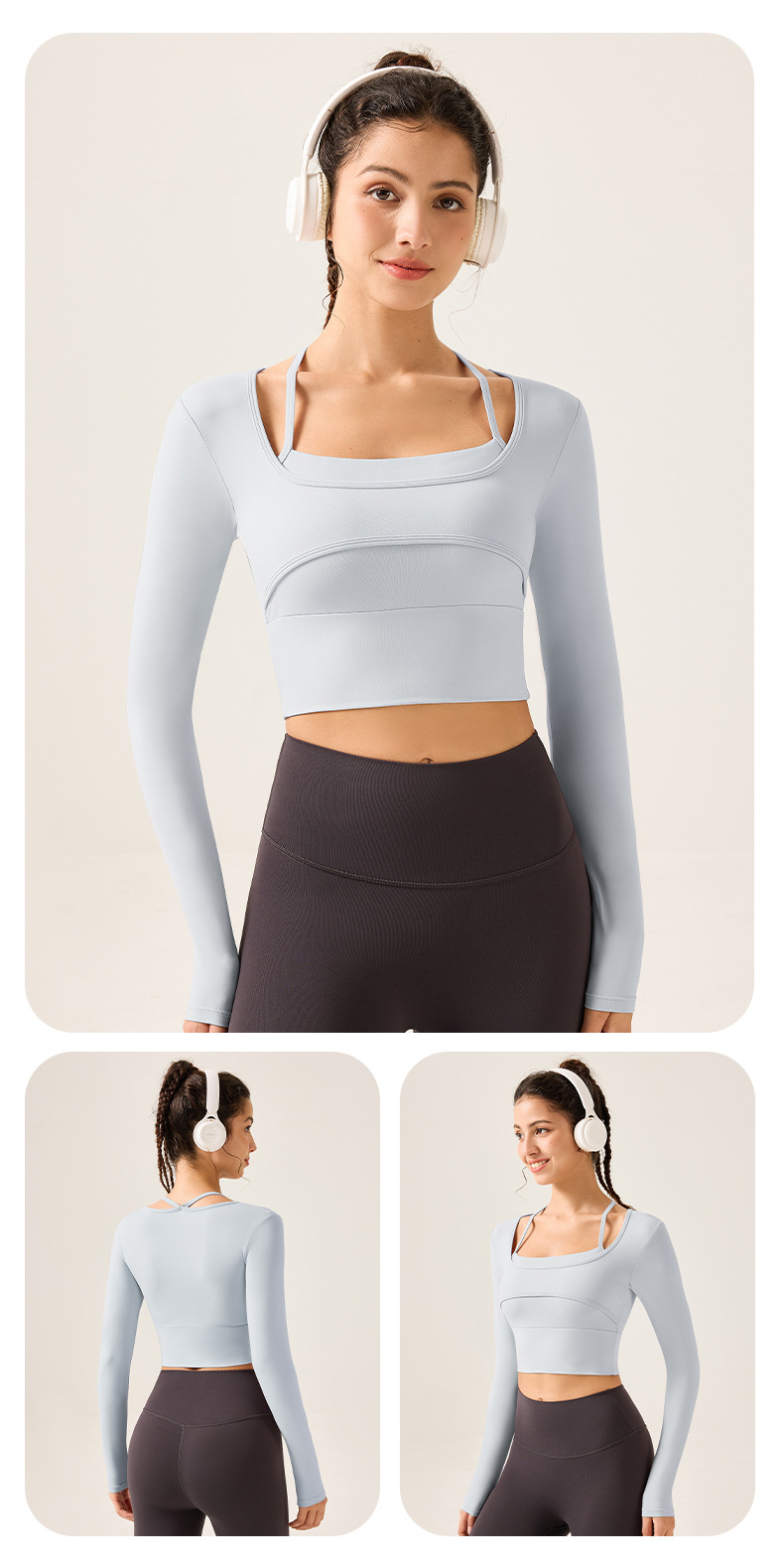 가슴 패드가 있는 여성용 요가복, 슬림핏 스포츠 탑, 고급스러운 긴팔 티셔츠, 필라테스 트레이닝 피트니스복스토어 가기