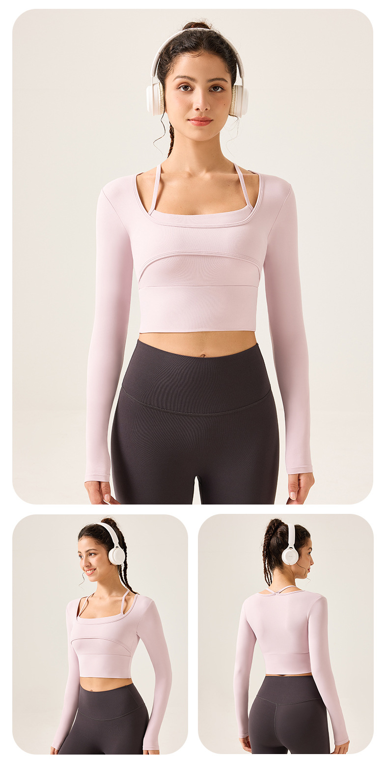 가슴 패드가 있는 여성용 요가복, 슬림핏 스포츠 탑, 고급스러운 긴팔 티셔츠, 필라테스 트레이닝 피트니스복