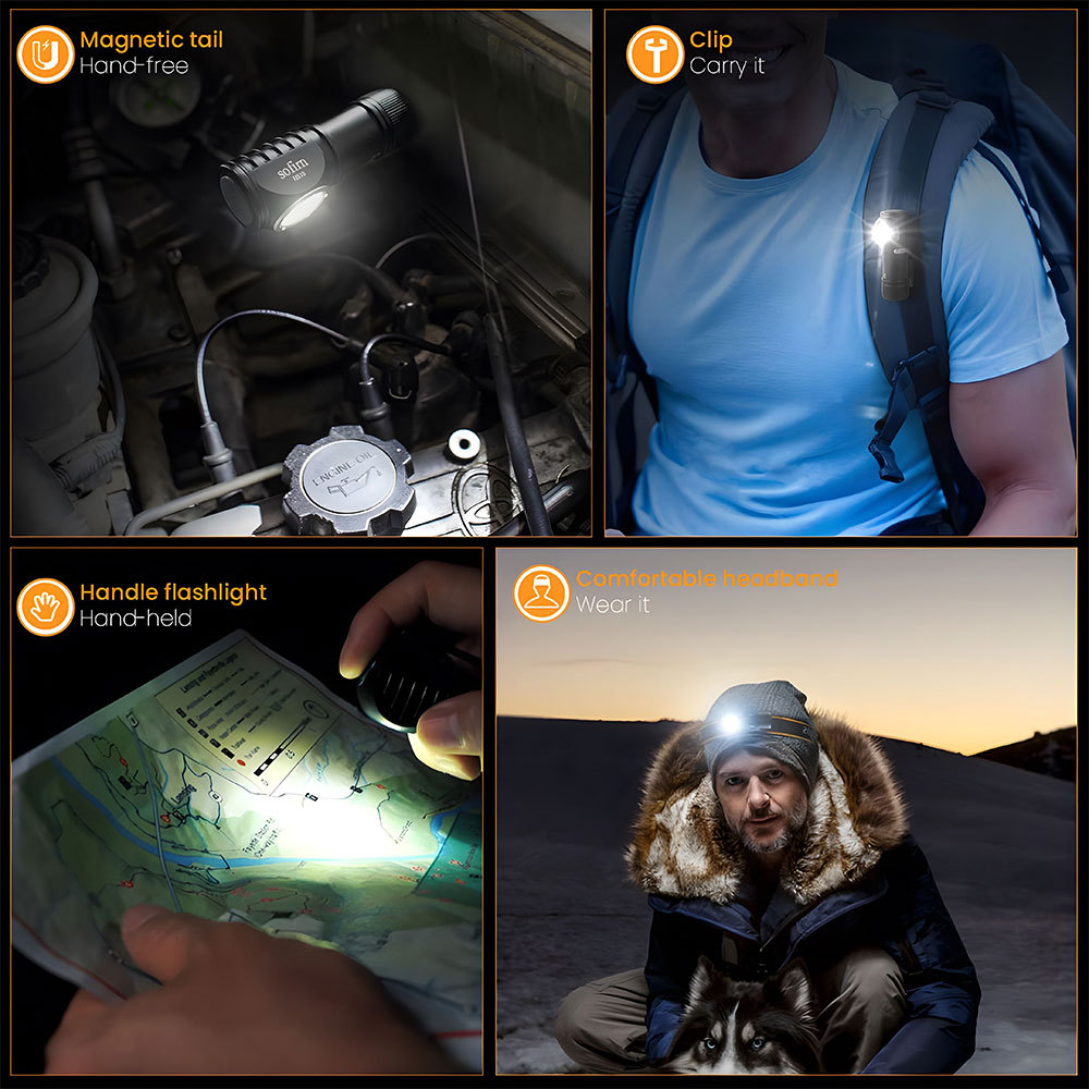 Sofun HS10 소피 헤드 램프 미니 휴대용 헤드 장착 듀얼 목적 소형 손전등 야외 사진