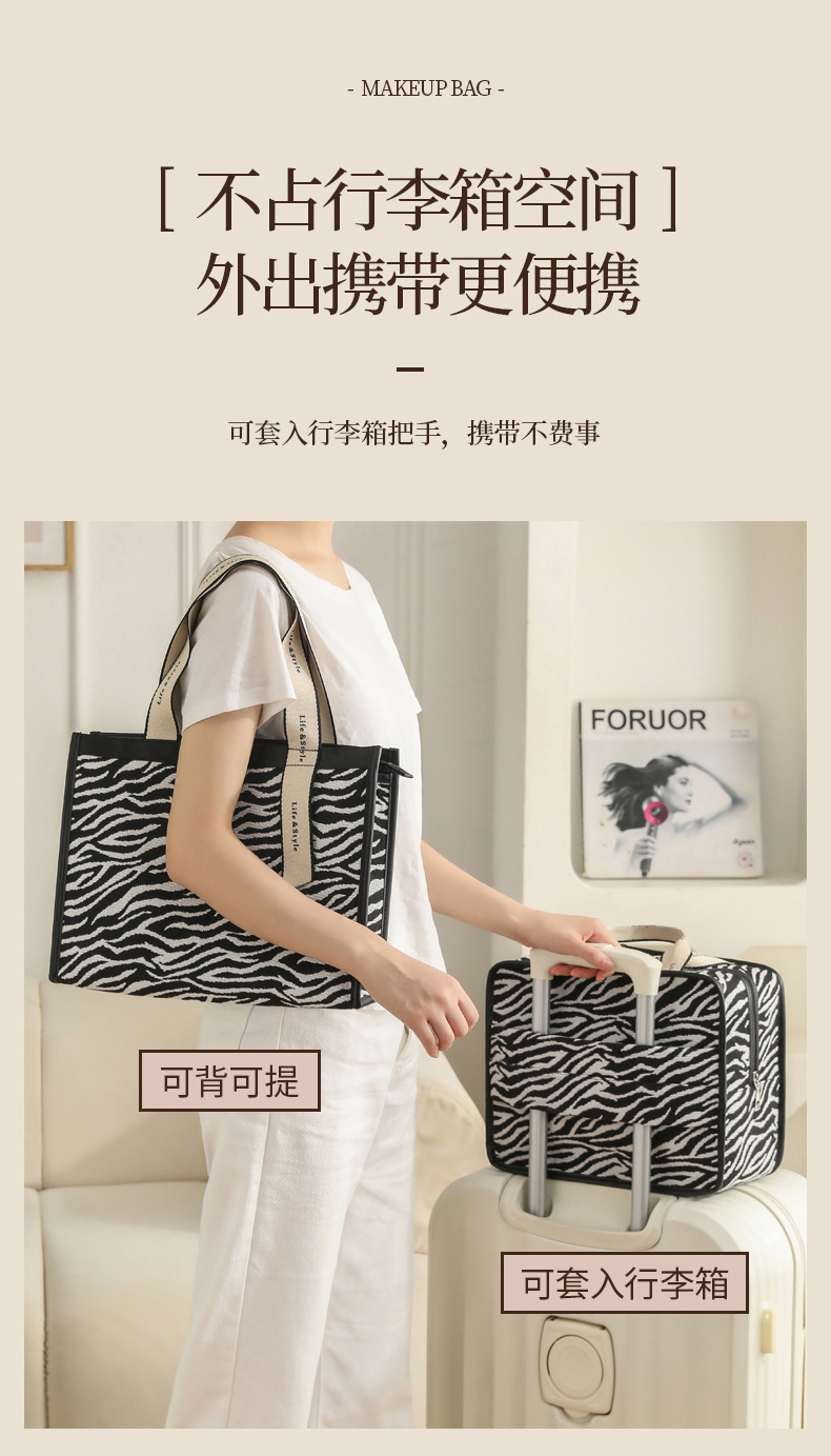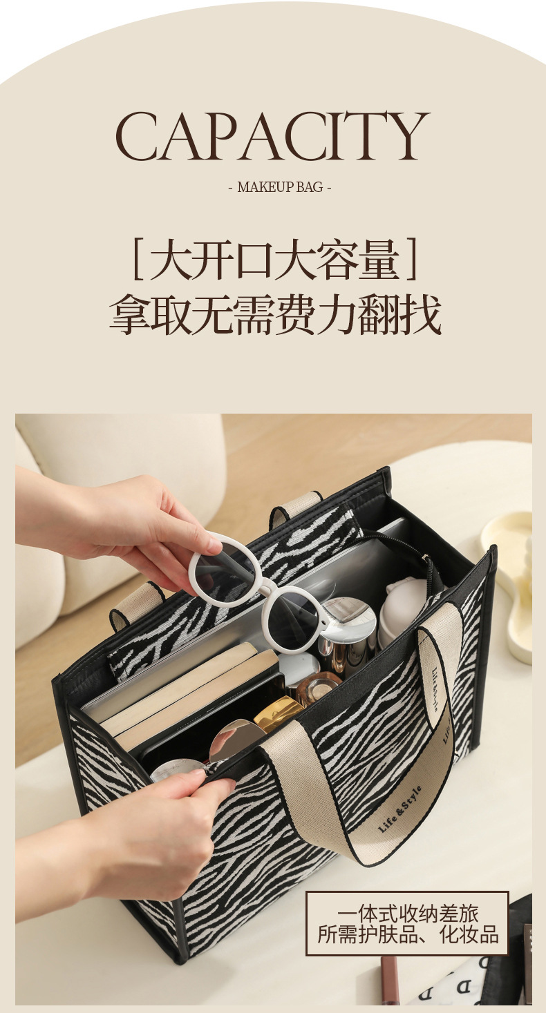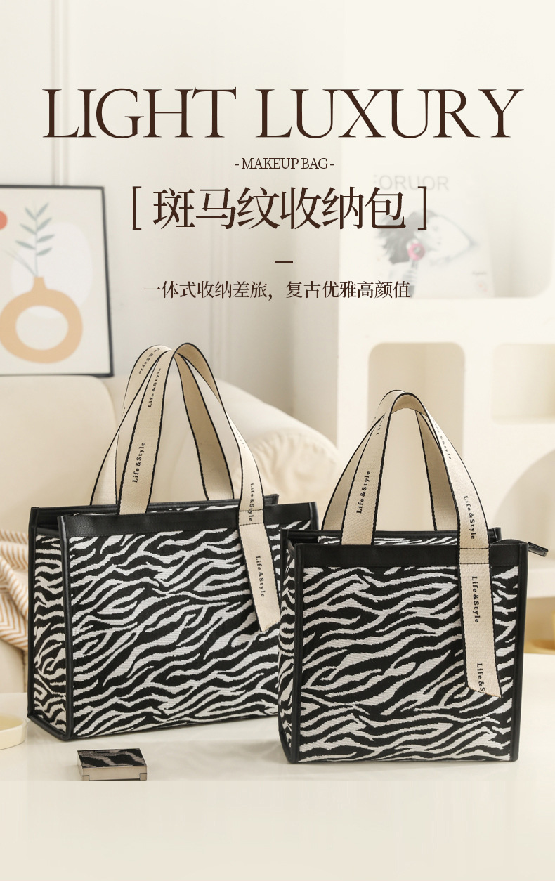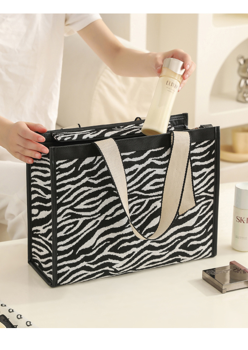 다기능 화장품 가방, 얼룩말 무늬 에스닉 스타일 캔버스 토트백, 고급스러운 대용량 출장 여행용 수납 가방
