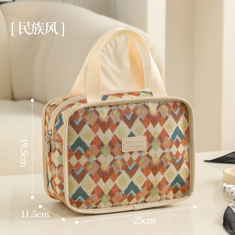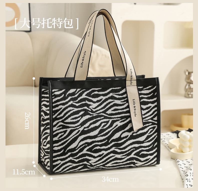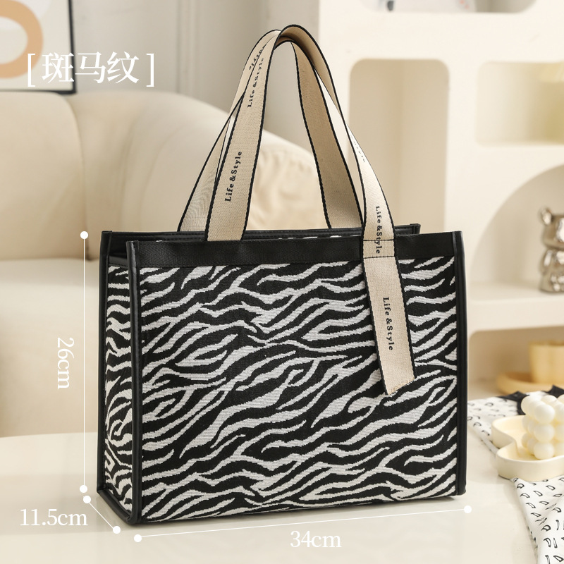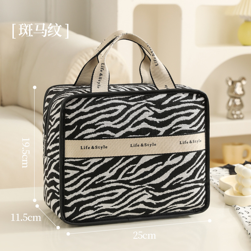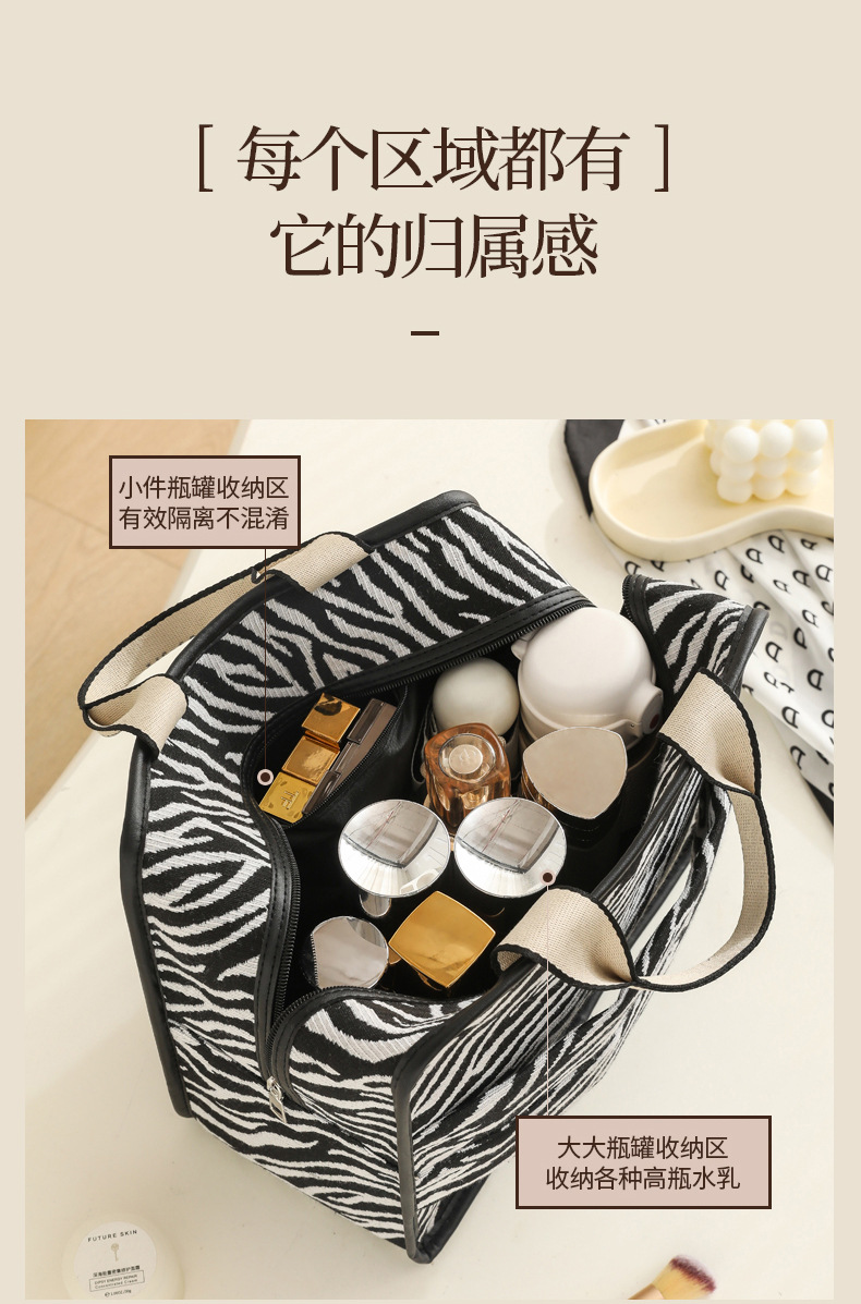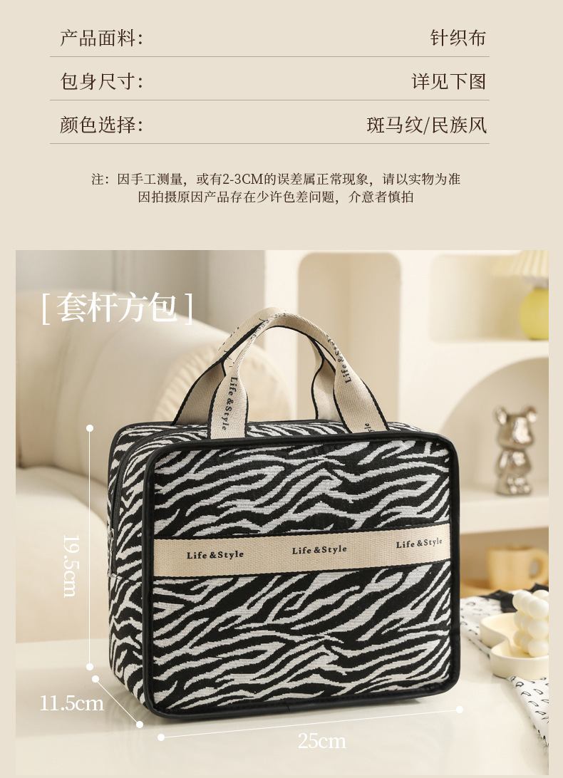 다기능 화장품 가방, 얼룩말 무늬 에스닉 스타일 캔버스 토트백, 고급스러운 대용량 출장 여행용 수납 가방