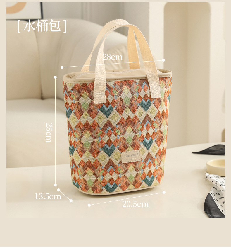 • 대비색 마름모 버킷 핸드백