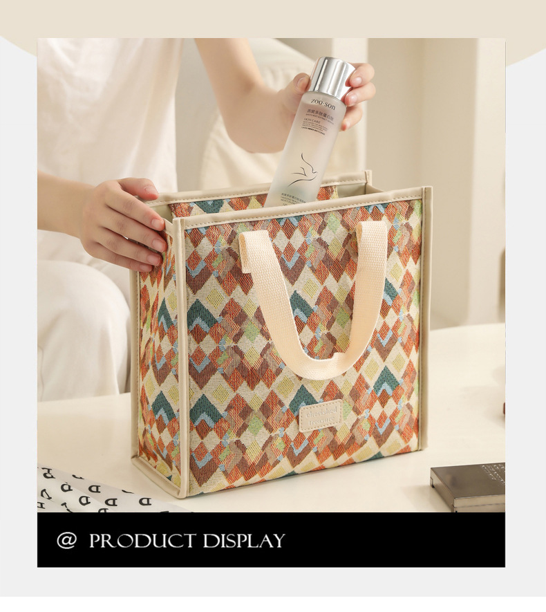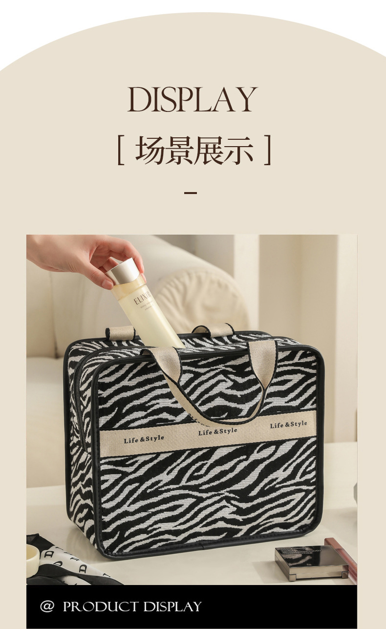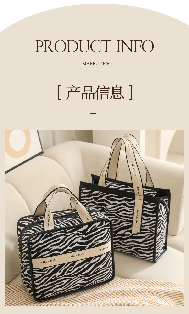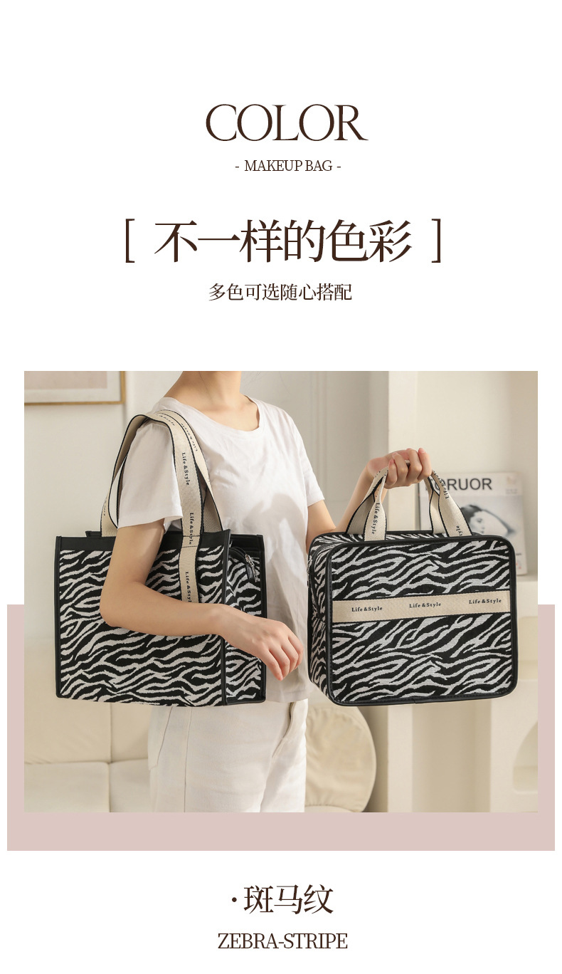 다기능 화장품 가방, 얼룩말 무늬 에스닉 스타일 캔버스 토트백, 고급스러운 대용량 출장 여행용 수납 가방스토어 가기
