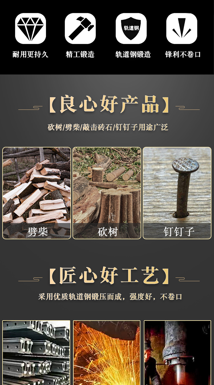 충칭 Yinping 수제 올스틸 단조 야외 가구 절단 나무, 목재 절단, 목재 절단, 산 절단 도끼 및 도끼스토어 가기