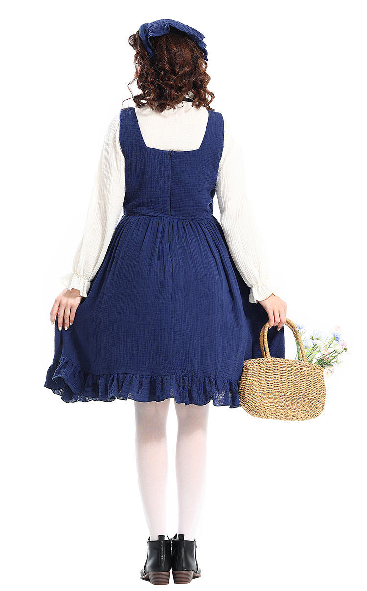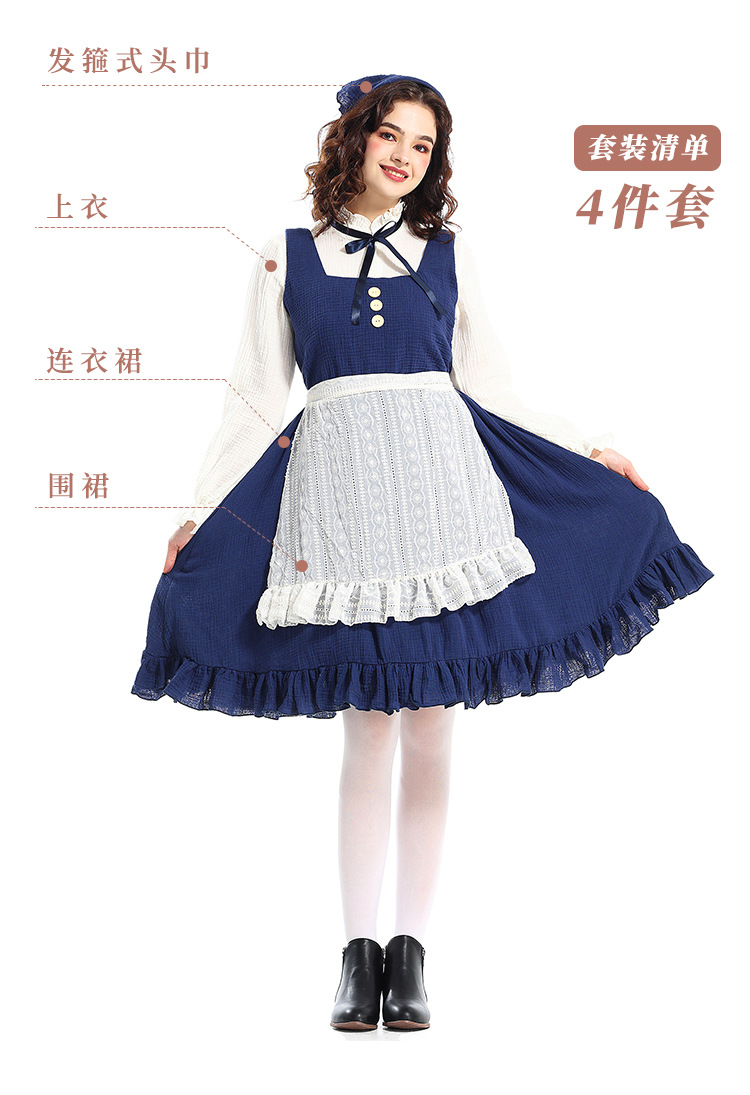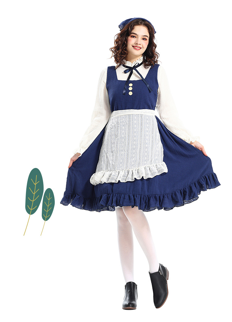성인 리틀 매치 소녀 의상 무대 공연 목회 농장 유화 스타일 네이비 메이드 옷