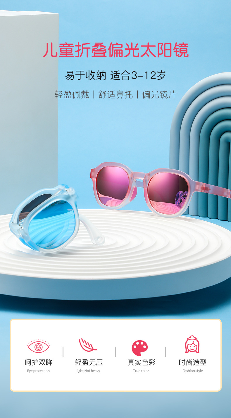 어린이 접이식 선글라스 소녀용 패션 자외선 차단 야외용 안경 귀여운 원형 프레임 어린이 선글라스 소년용