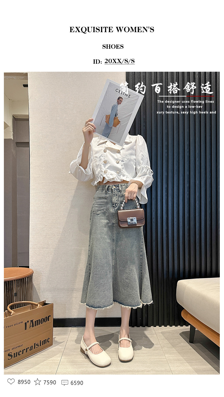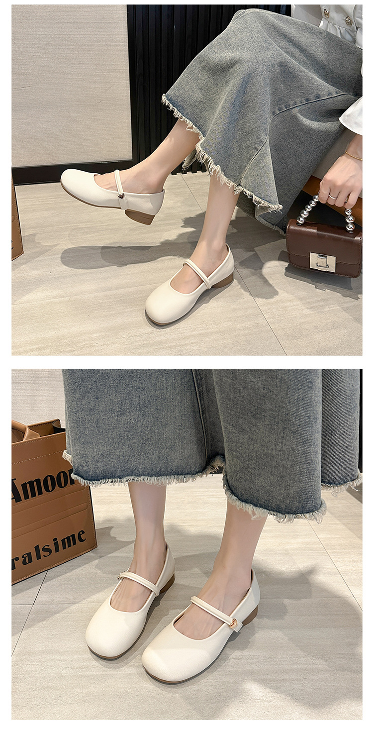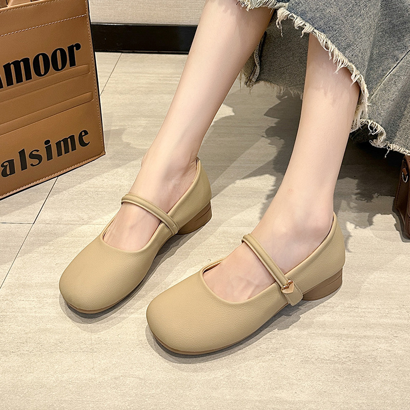 얕은 입 스커트 여름 부드러운 단독 신발 여성의 봄과 가을 2024 새로운 두꺼운 힐 메리 제인 신발 정품 가죽 밀크 신발스토어 가기
