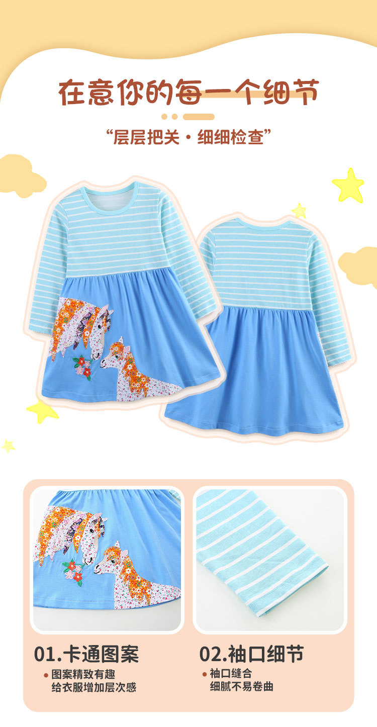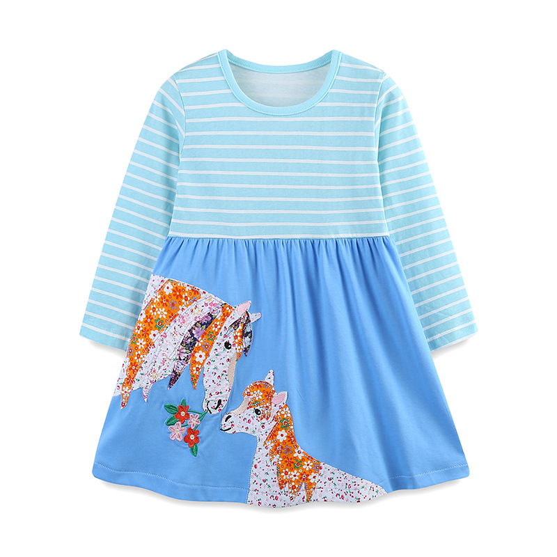 국경 간 소녀 긴팔 원피스 니트 코튼 포니 자수 꽃 원피스 아기 소녀의 줄무늬 인쇄 공주 원피스스토어 가기