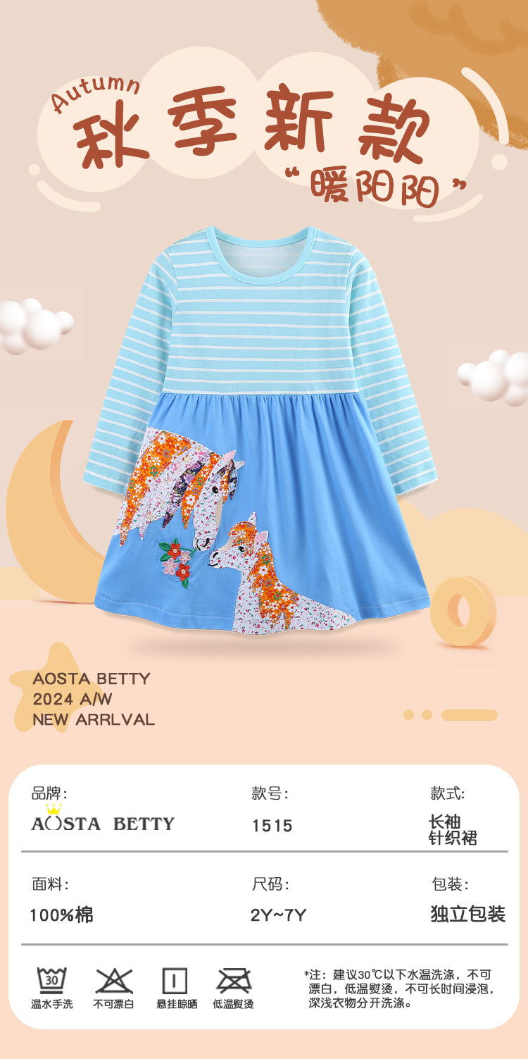 국경 간 소녀 긴팔 원피스 니트 코튼 포니 자수 꽃 원피스 아기 소녀의 줄무늬 인쇄 공주 원피스