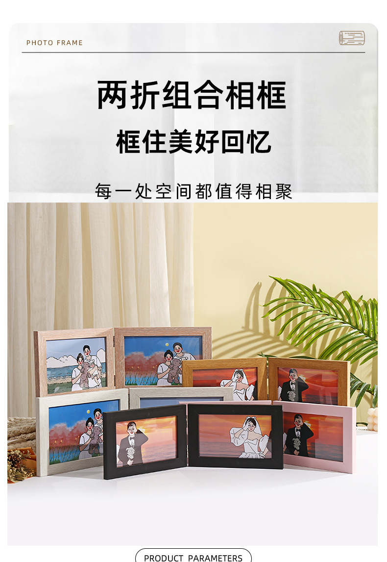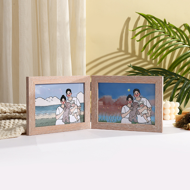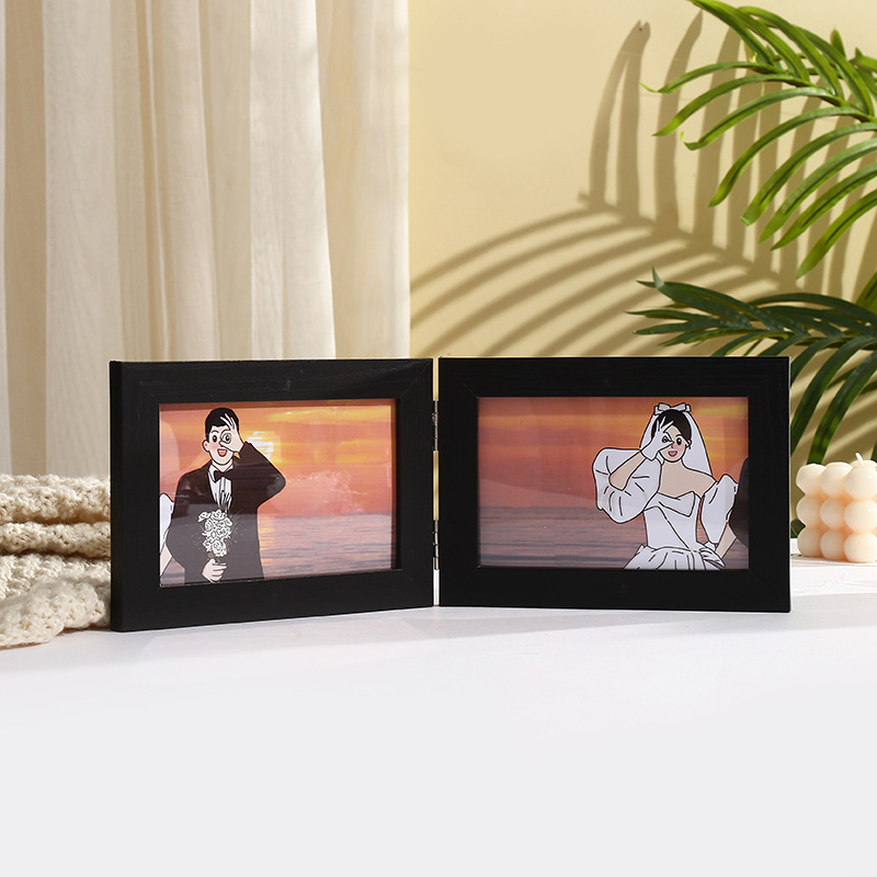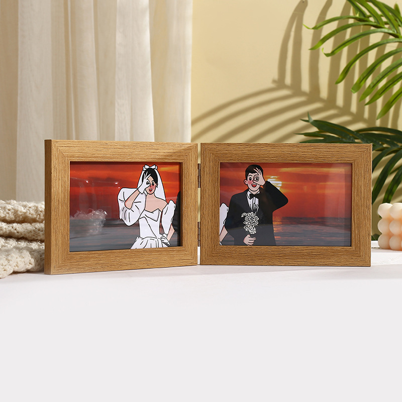 간단한 나무 접이식 두 조각 가로 프레임 크리 에이 티브 테이블 결합 된 커플 사진 6inch 사진 스튜디오 액자 장식품 도매