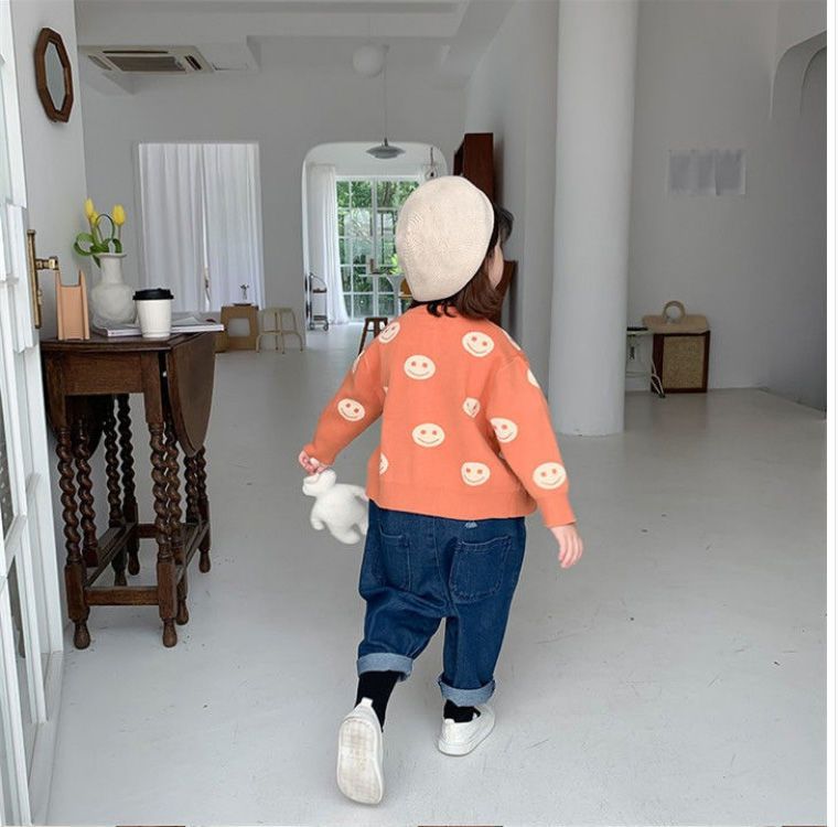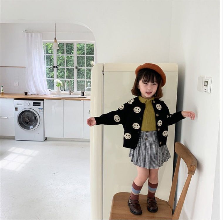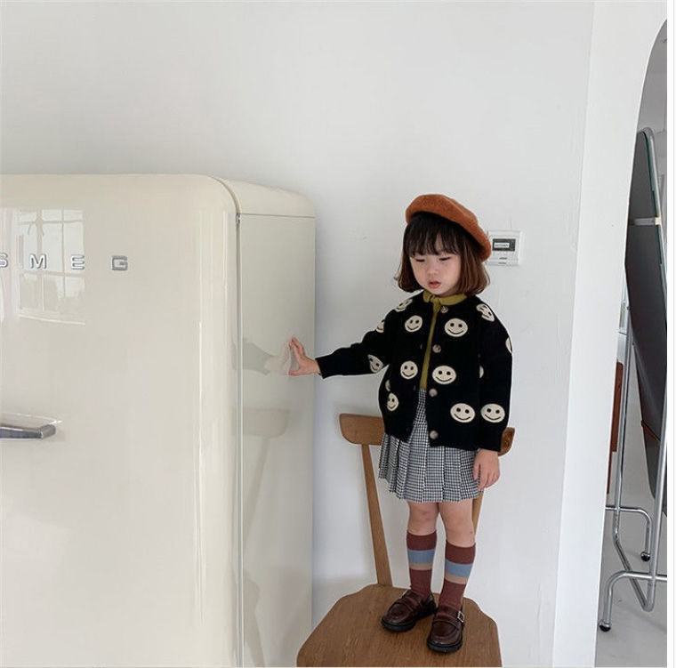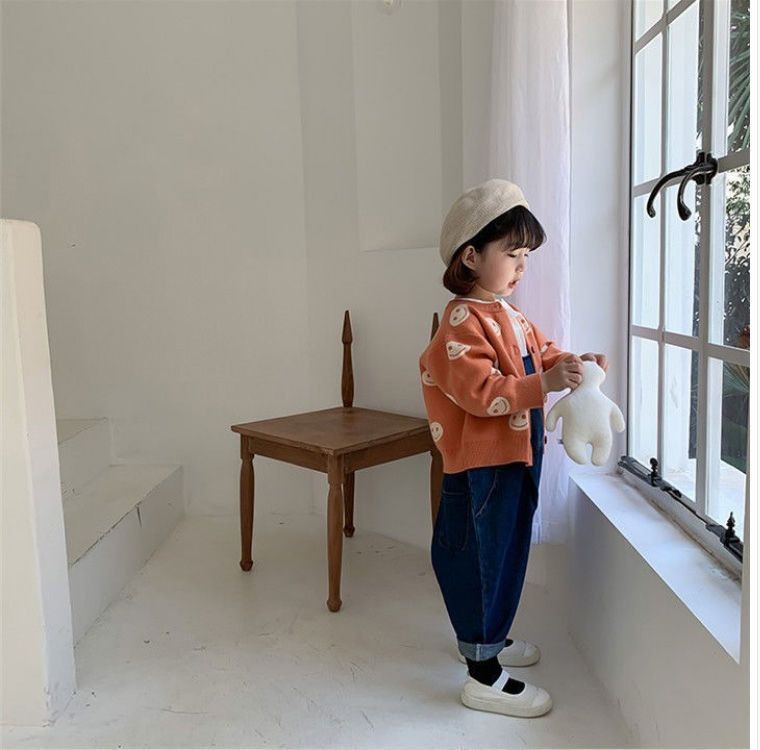 아동용 니트 가디건 2025 봄, 가을 새로운 스타일 소녀의 세련된 한국식 도트 무늬 소년 소녀 베이비 스웨터 재킷 유행스토어 가기