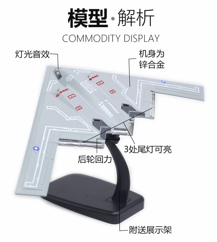 국경 간 B2 폭격기 합금 항공기 모델 유령 금속 블랙 버드 정찰 항공기 소리와 가벼운 백 포스 브래킷 대외 무역스토어 가기