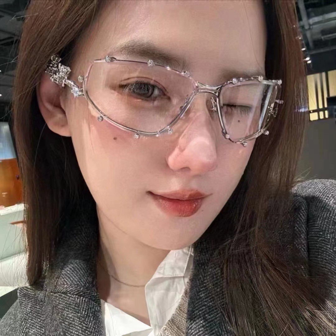 2024 크로스 미러 새로운 패션 안경 다이아몬드 모양의 거울 레드 라이딩 북 스타 인터넷 축하 거리 사진 같은 대형 프레임 미러 프레임