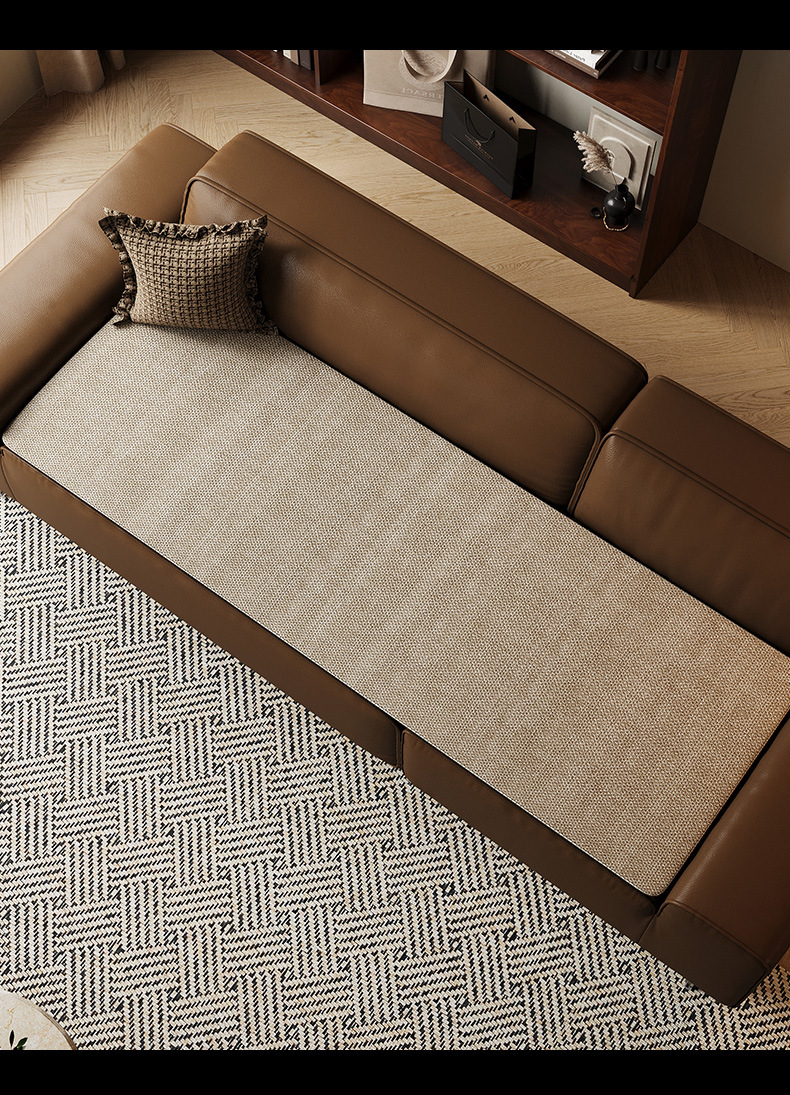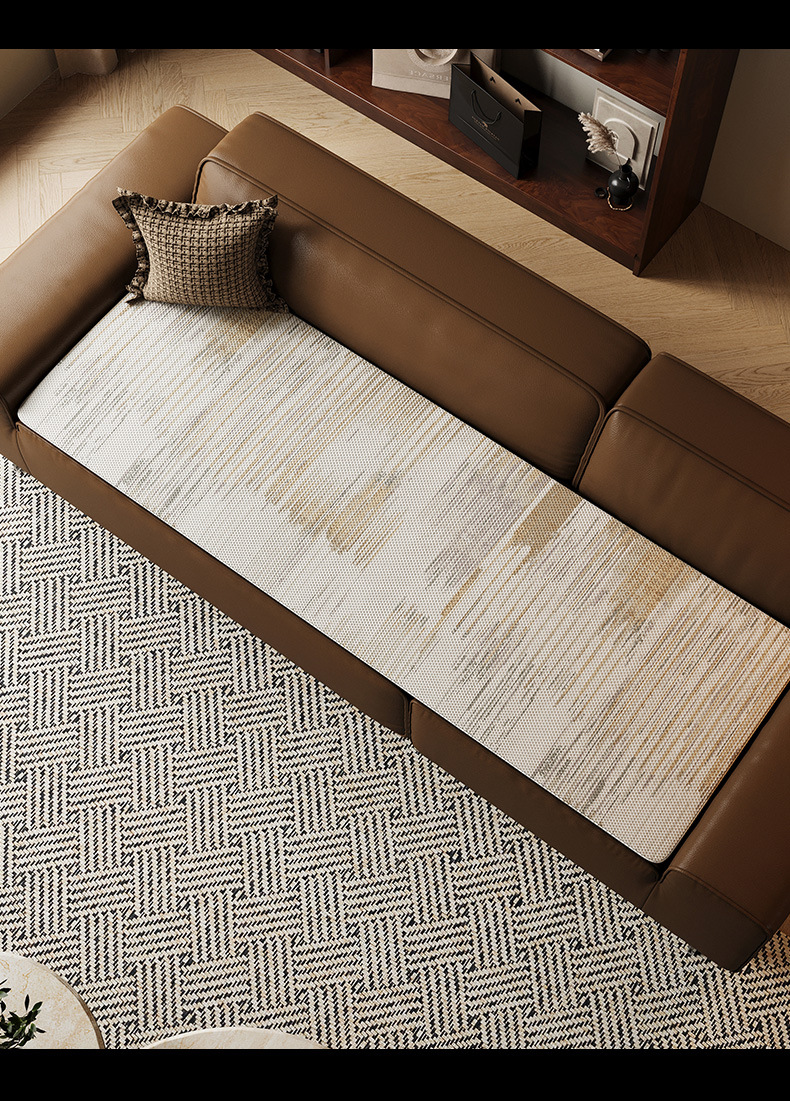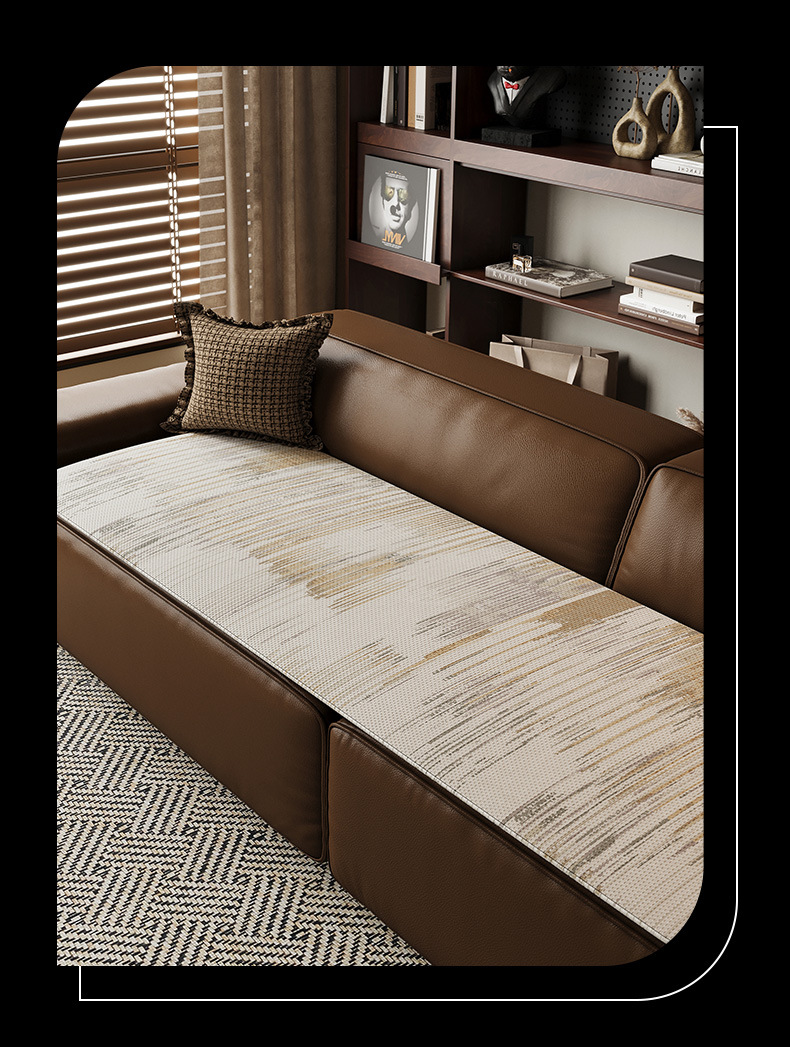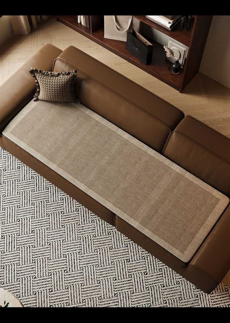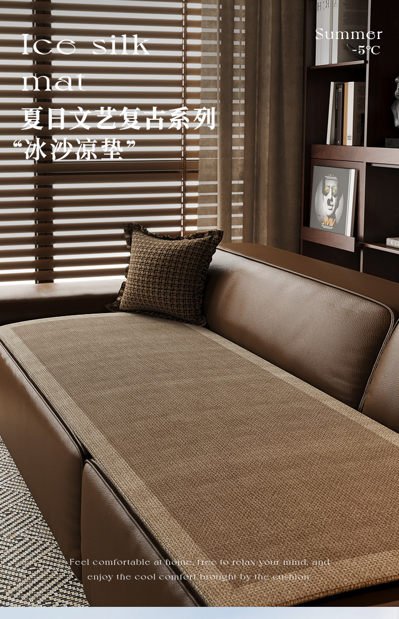 여름 아이스 실크 소파 쿠션 천 쿨 느낌 미끄럼 방지 매트 2024 새로운 중반 고대 하이 엔드 센스 스트레이트 로우 쿠션 커버 타월