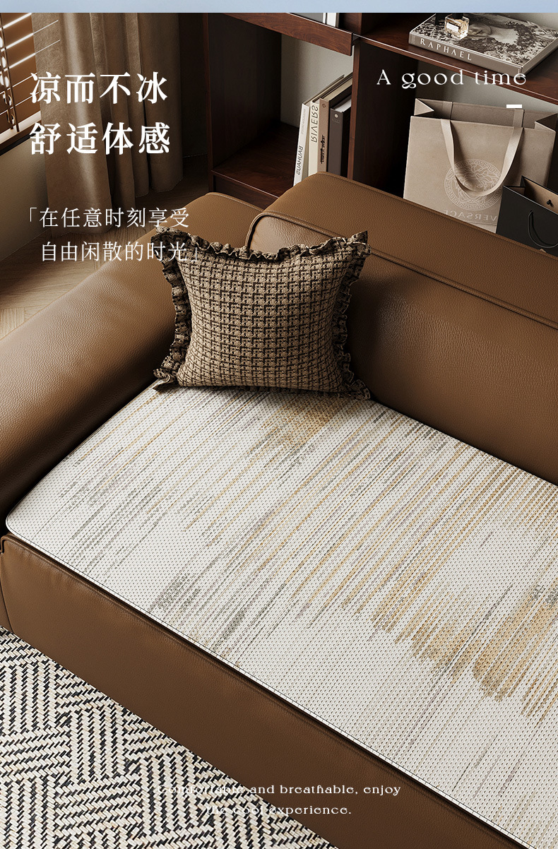 여름 아이스 실크 소파 쿠션 천 쿨 느낌 미끄럼 방지 매트 2024 새로운 중반 고대 하이 엔드 센스 스트레이트 로우 쿠션 커버 타월스토어 가기