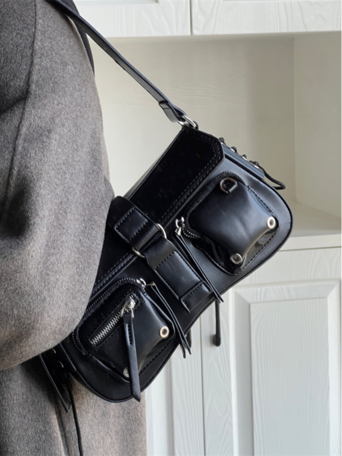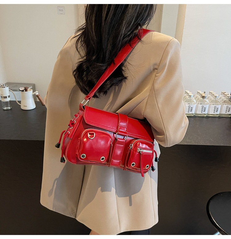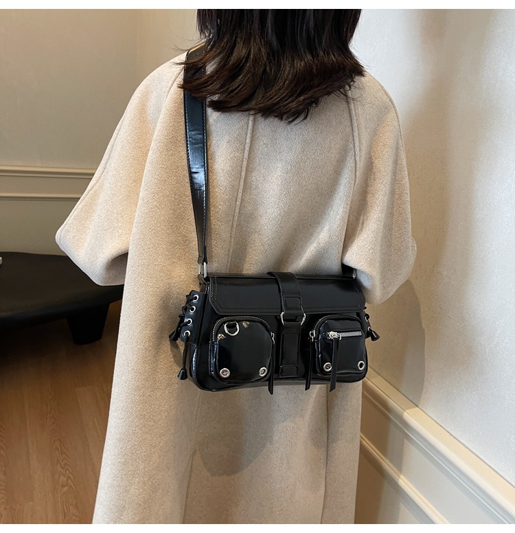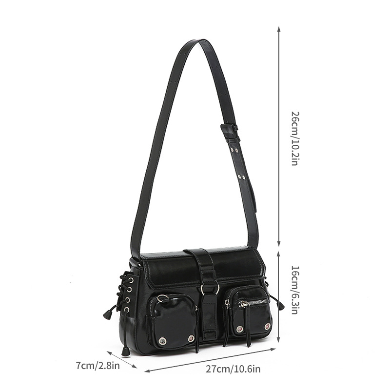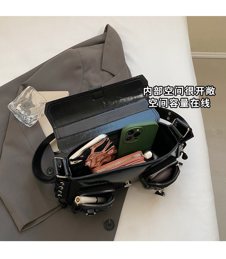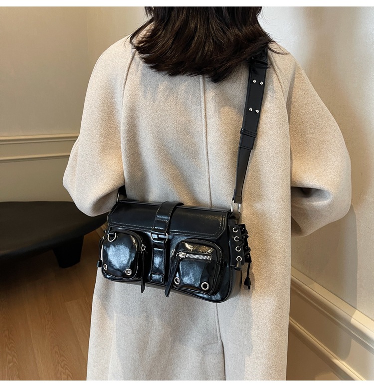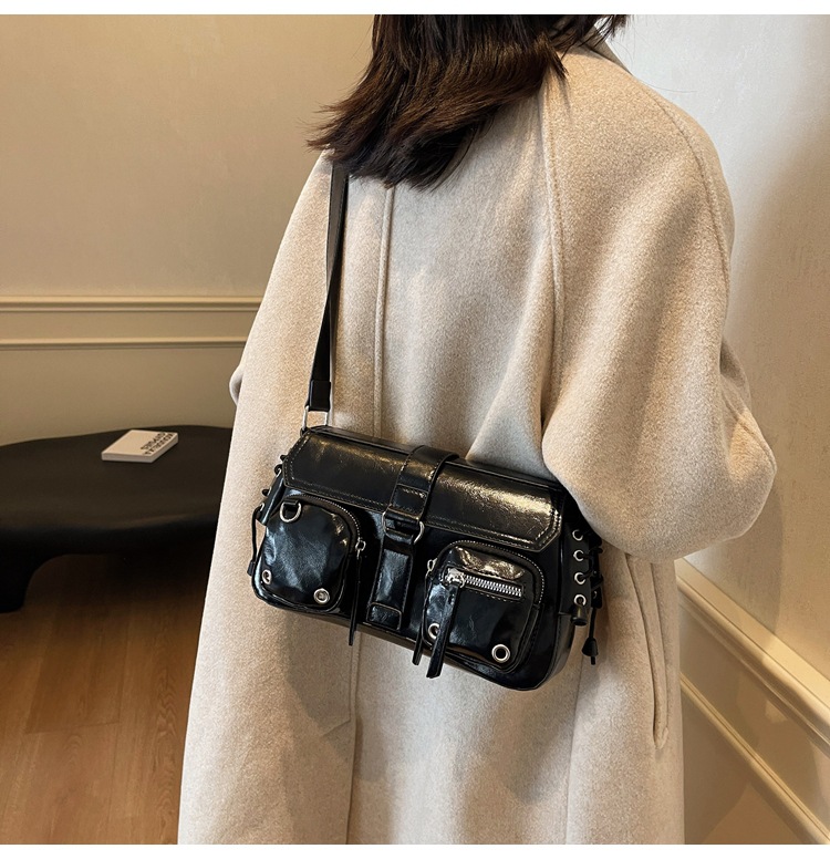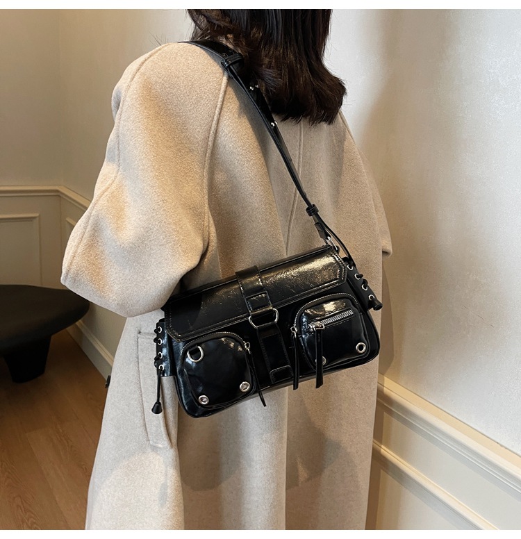 문자 메시지 시원한 뜨거운 소녀 겨드랑이 가방 바게트 가방 여성의 2024 새로운 틈새 디자인 오토바이 가방 숄더백 메신저 가방스토어 가기