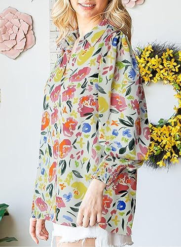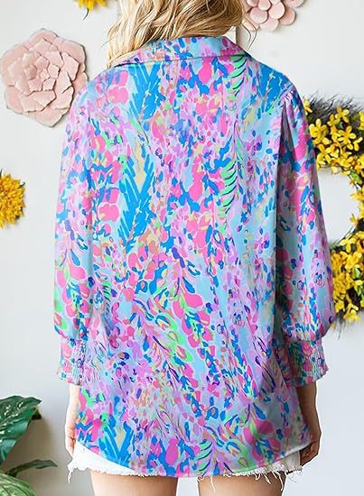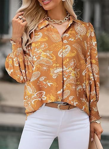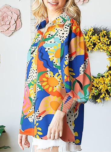 2025 가을 겨울 유럽과 미국 대외 무역 국경 간 여성 의류 아마존 인기 긴팔 프린트 탑 라펠 랜턴 슬리브 셔츠스토어 가기