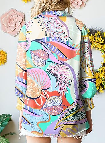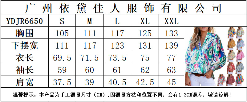 2025 가을 겨울 유럽과 미국 대외 무역 국경 간 여성 의류 아마존 인기 긴팔 프린트 탑 라펠 랜턴 슬리브 셔츠