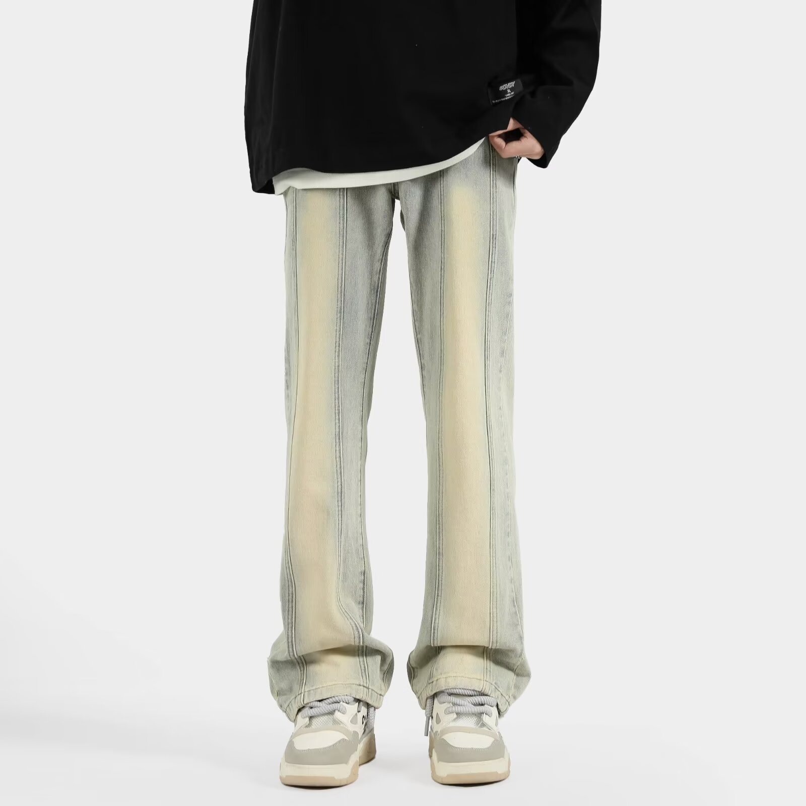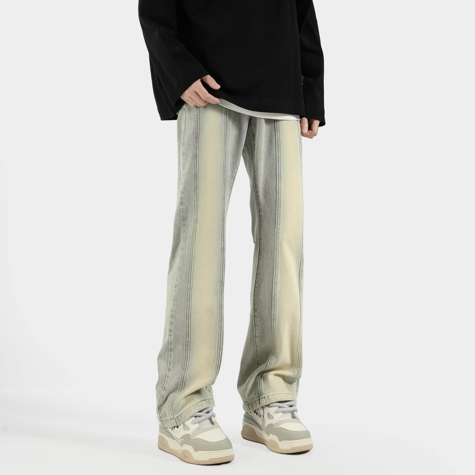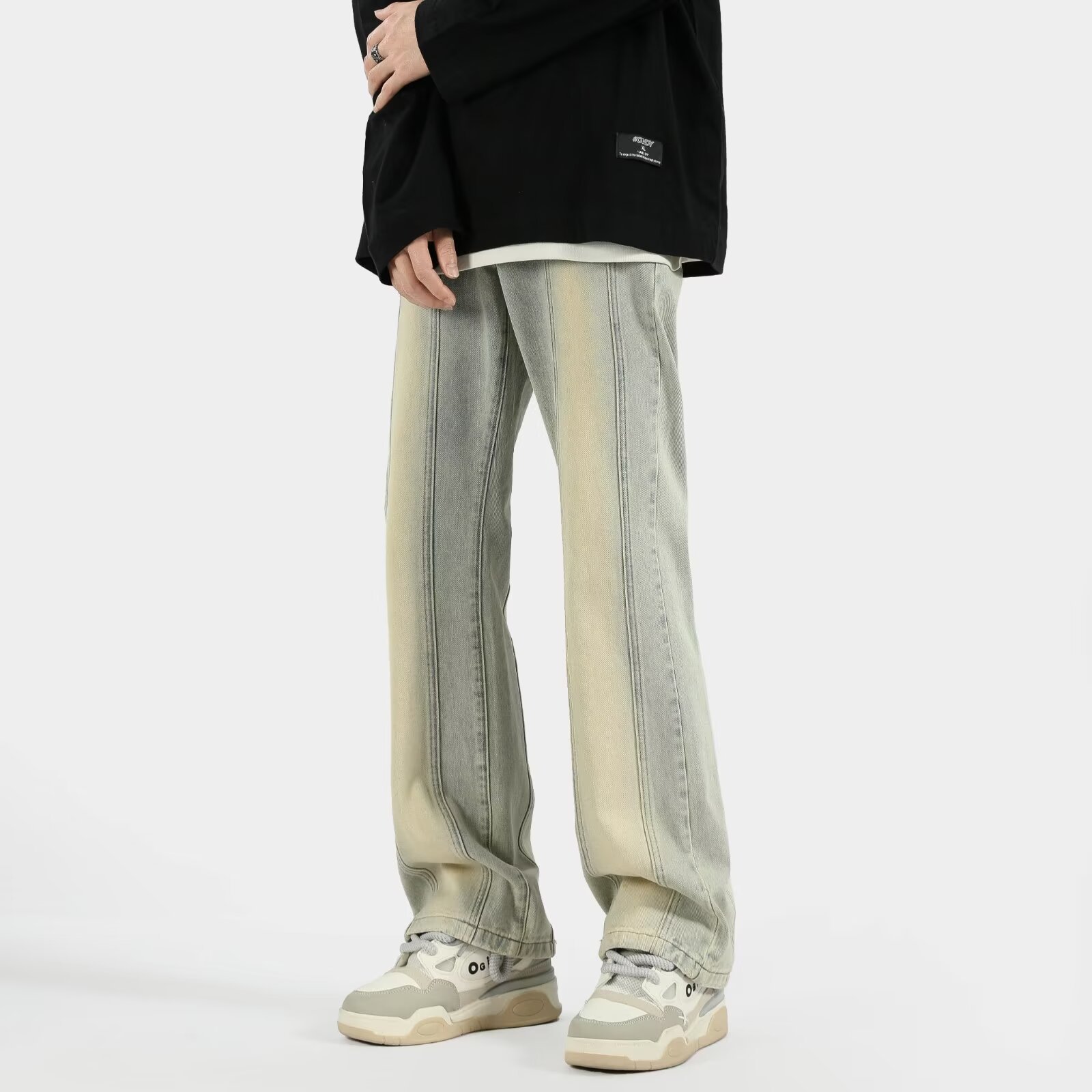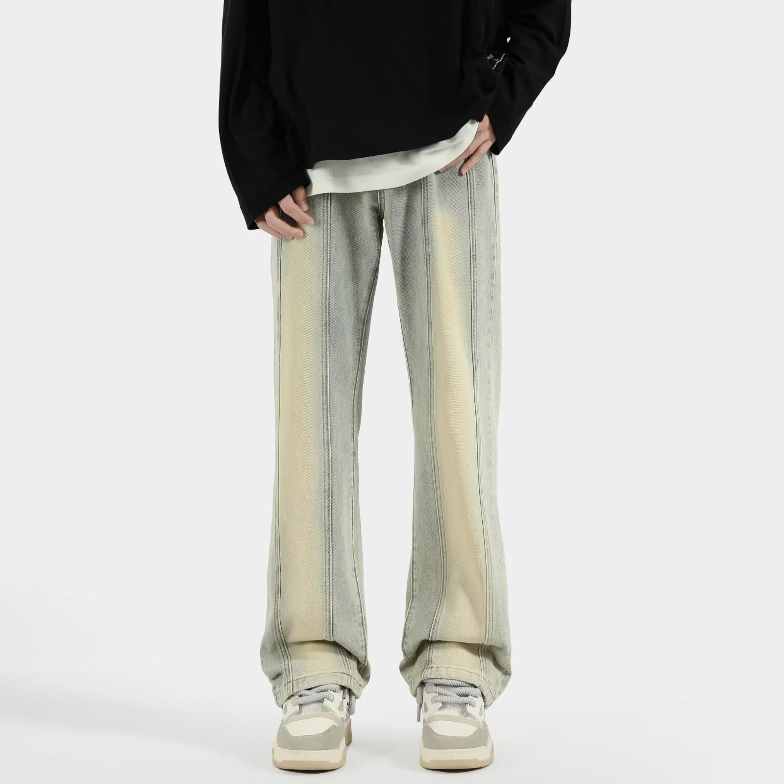 미국식 하이 스트리트 바이브 세탁 오래 된 노란색 머드 염료 청바지 남성용 트렌디 인 스트레이트 씬 슬림 스택 바지스토어 가기