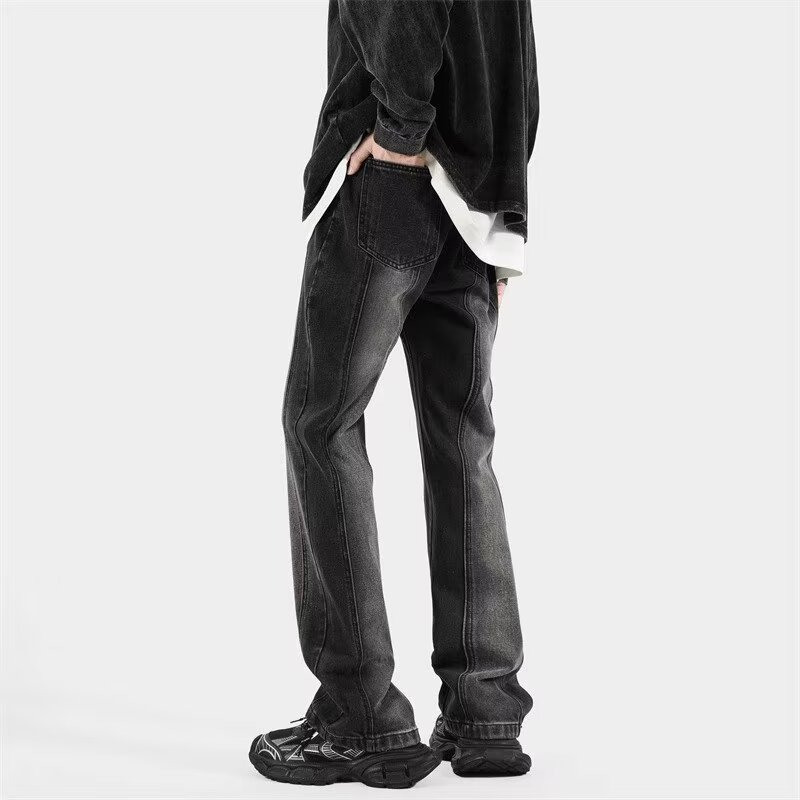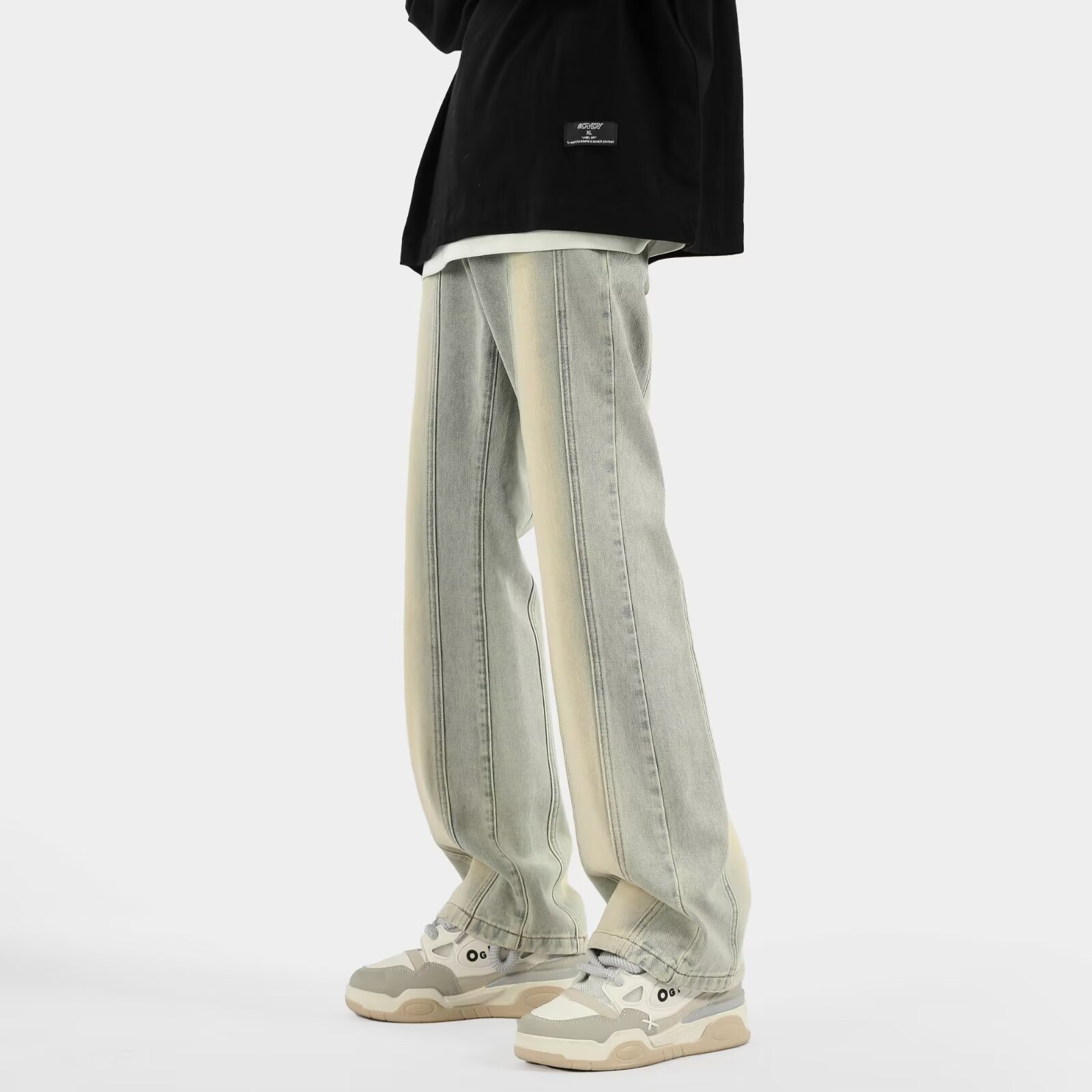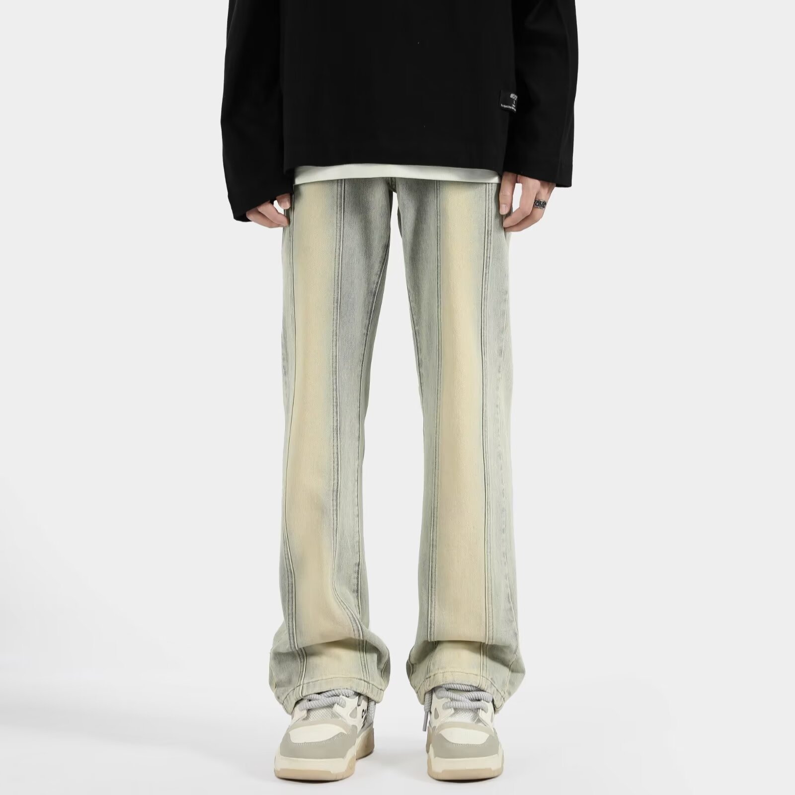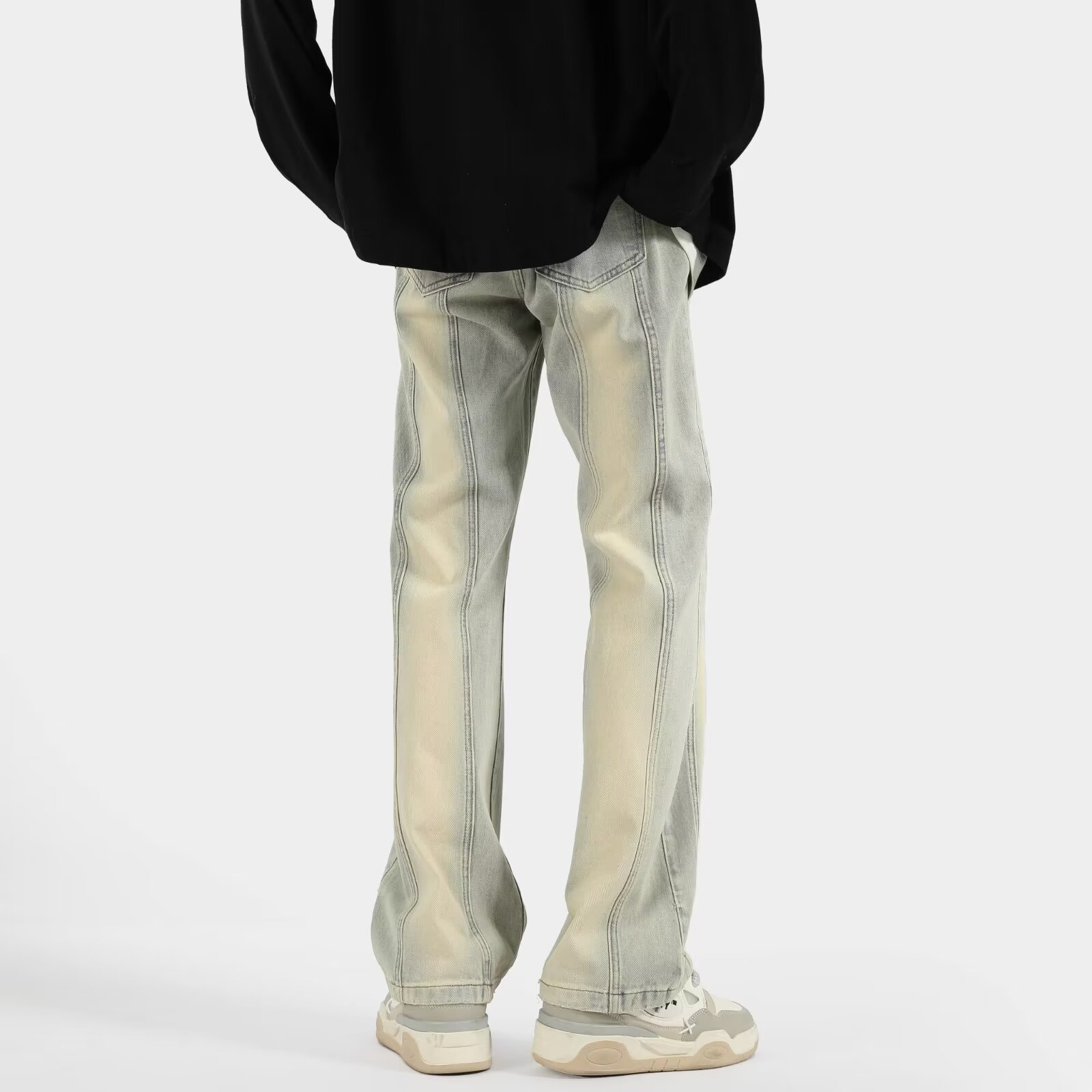 미국식 하이 스트리트 바이브 세탁 오래 된 노란색 머드 염료 청바지 남성용 트렌디 인 스트레이트 씬 슬림 스택 바지스토어 가기