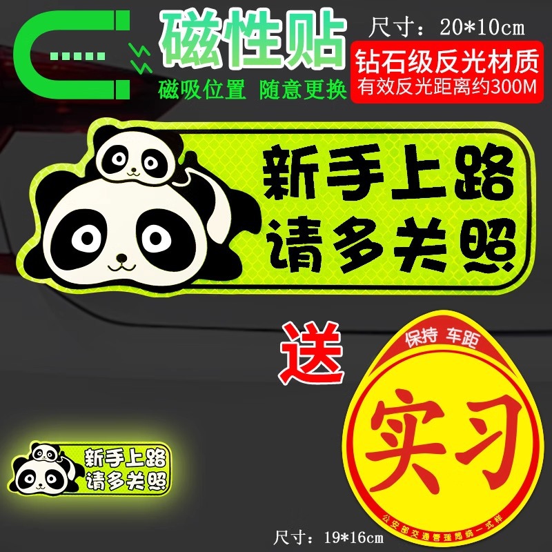 • 자기 매력 인턴십 스티커 1 조각 [팬더 "초보자 도로 마그네틱 스티커]]