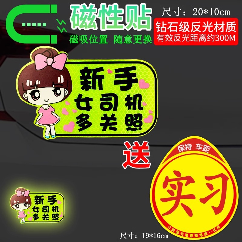 인턴쉽 자동차 스티커 도로에 초보자 반사 자기 스티커 자동차 스티커 창조적 인 인턴쉽 특별 자기 기호 여성 드라이버