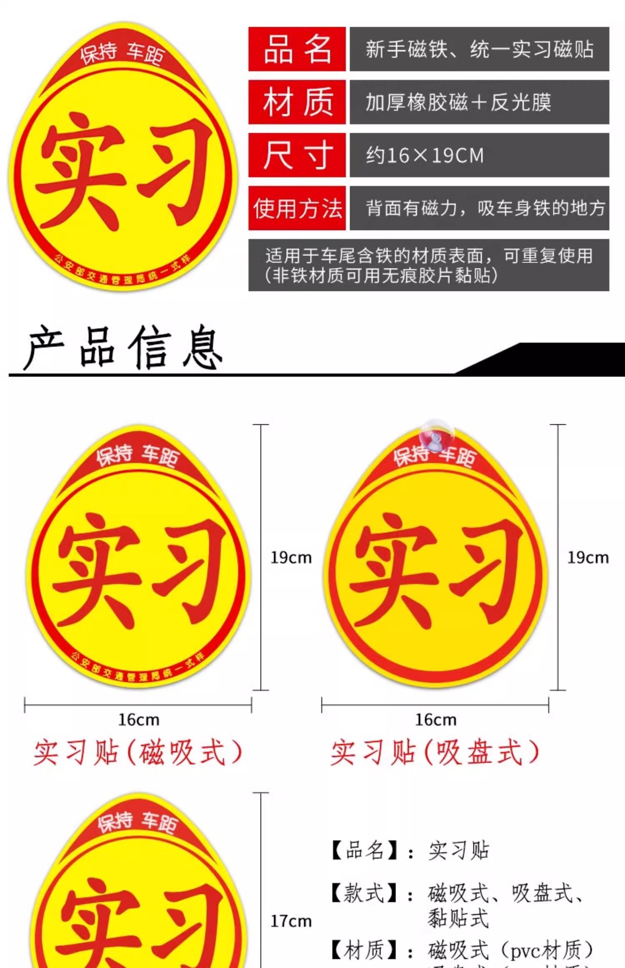 • 마그네틱 어트랙션 인턴 스티커 1 개 [차이견 "초보자 도로 마그네틱 스티커]