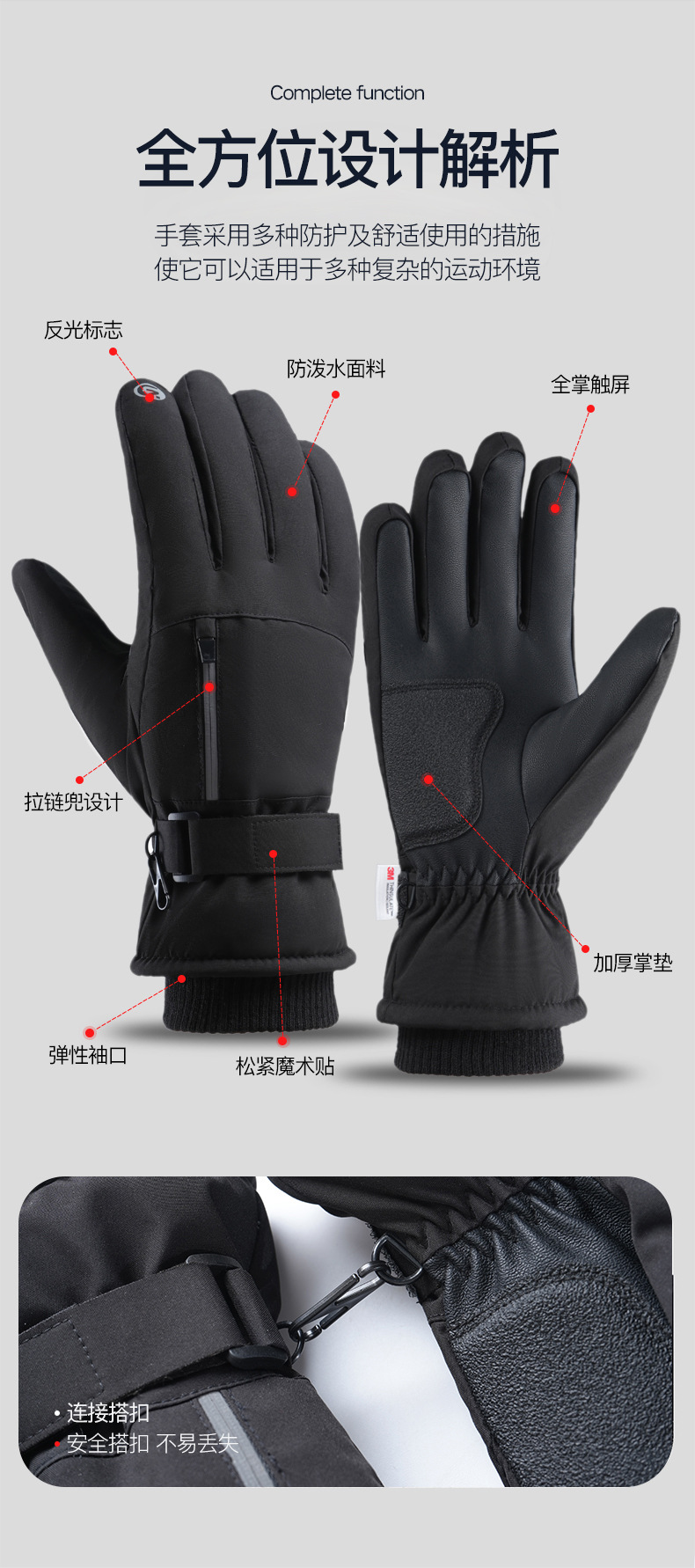 남성용 겨울 스키 장갑 Q318 두꺼운 방한, 미끄럼 방지, 발수 터치 스크린 확장형 따뜻한 사이클링 및 스키 장갑스토어 가기