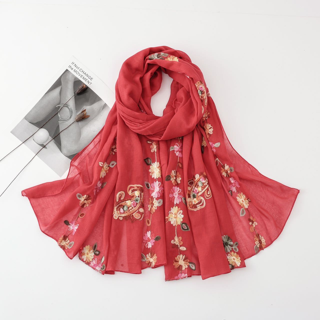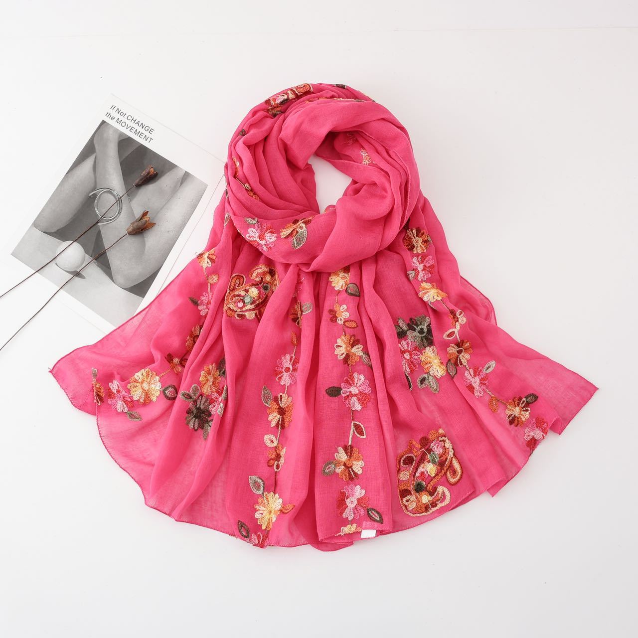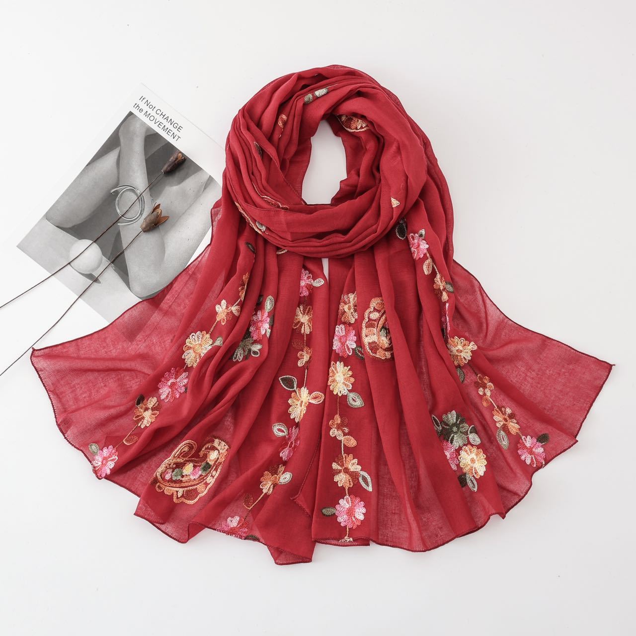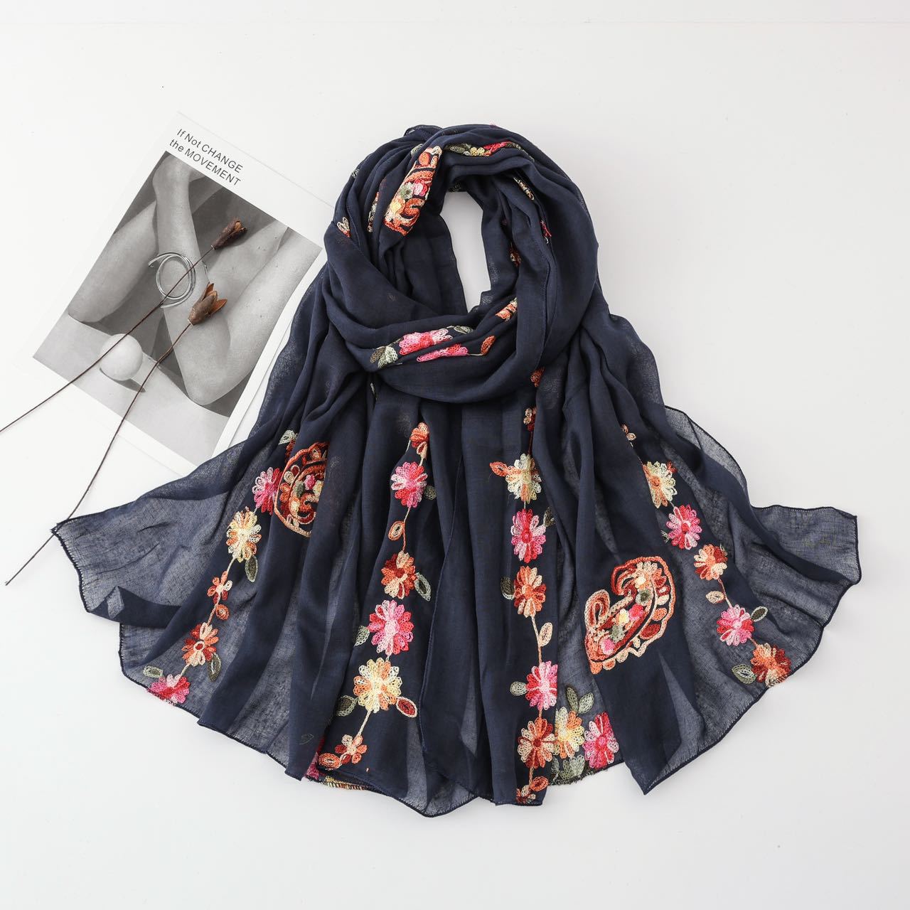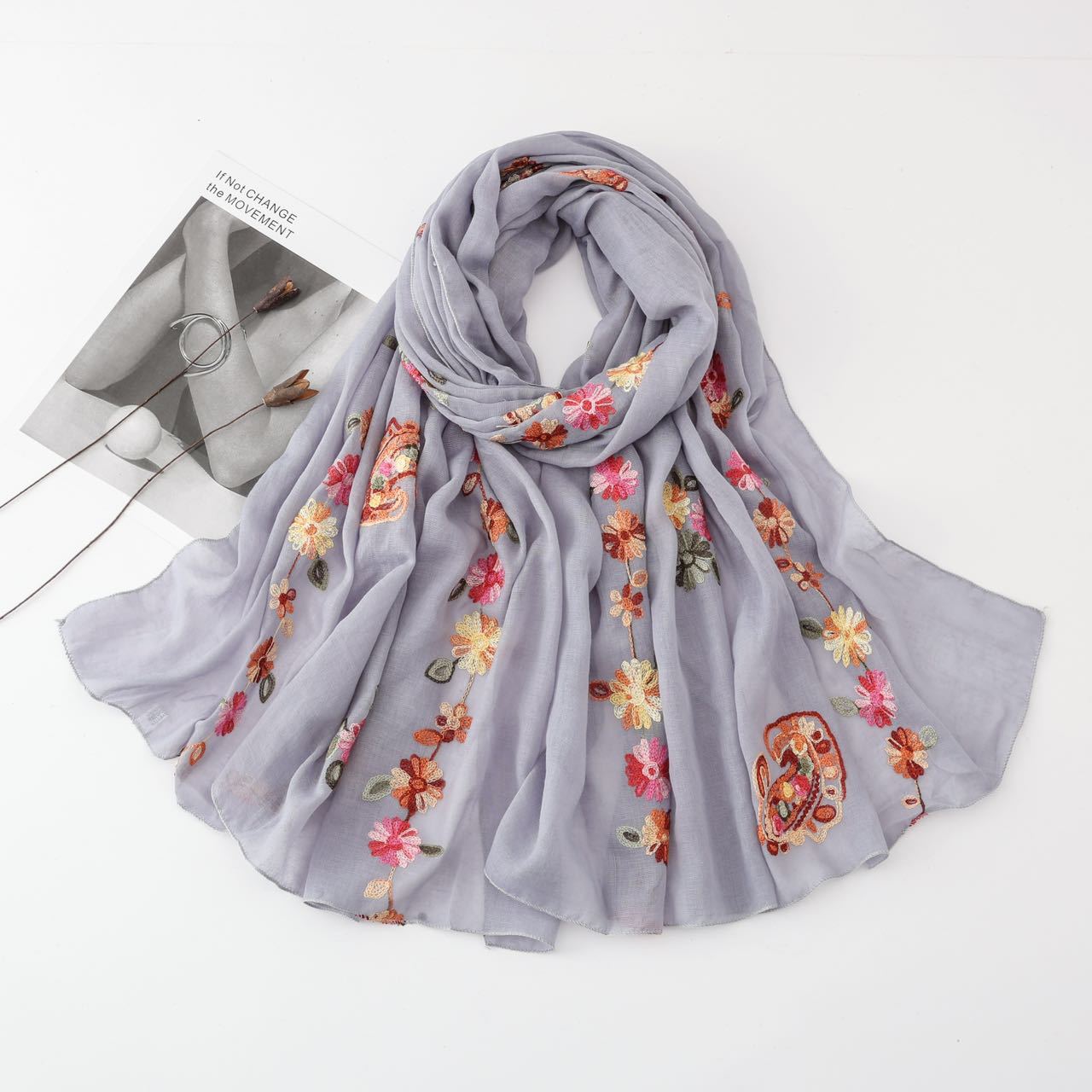 2025년 신상 스카프, 고급스럽고 다용도로 활용 가능한 자외선 차단 숄, 여성용 문예 민족풍 자수 실크 스카프, 해외 전용스토어 가기