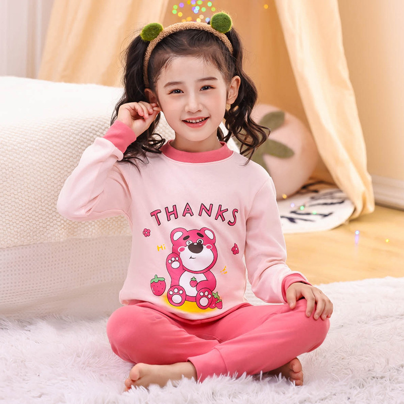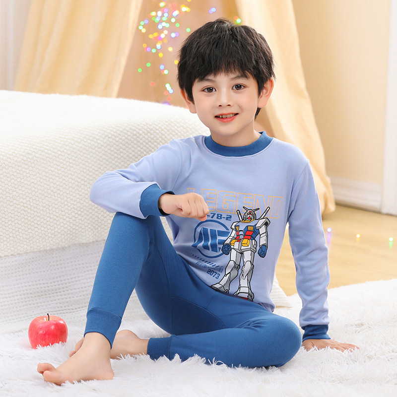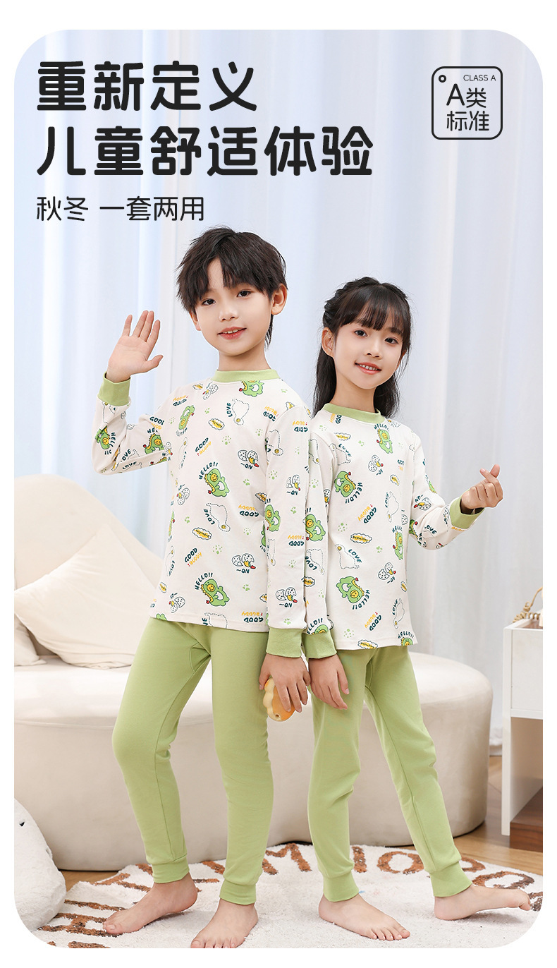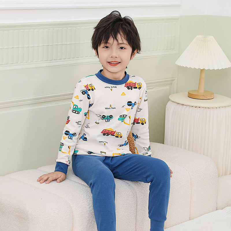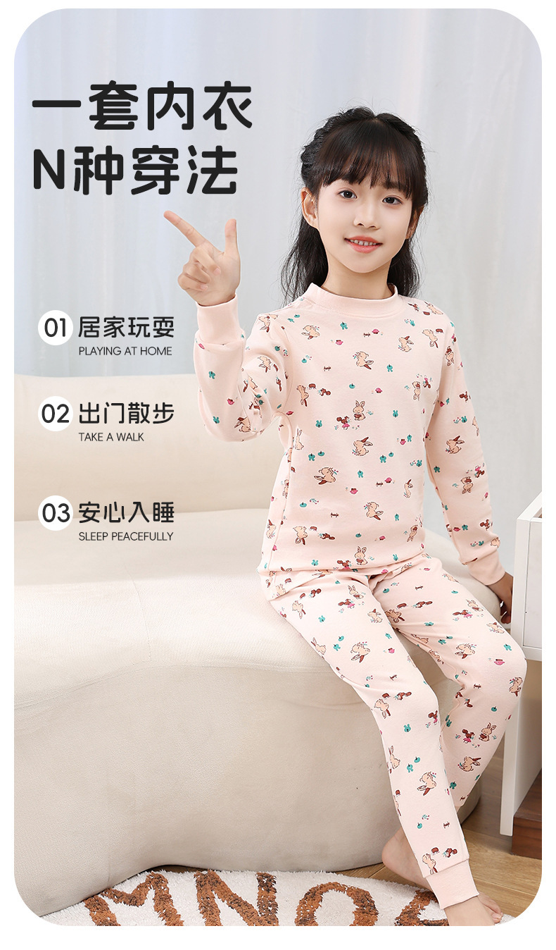 2024 가을/겨울 어린이 가을 옷과 바지 코튼 속옷 세트 중간 칼라 코튼 스웨터 따뜻한 보텀 파자마 소년 소녀스토어 가기