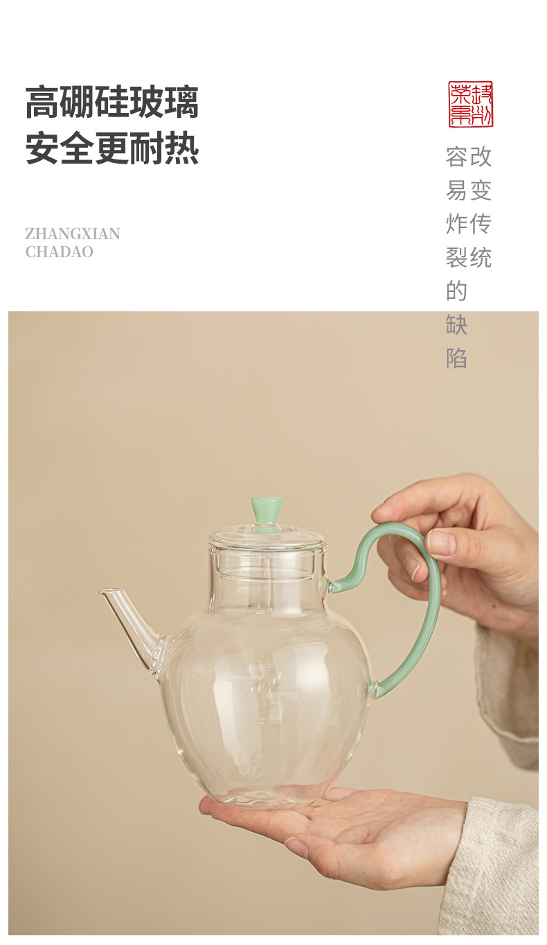 수제 높은 붕소 실리콘 모방 노래 주전자 수선화 유리 냄비 녹색 주전자 과일 차 향 차 홈 오피스 쿵푸 차 세트