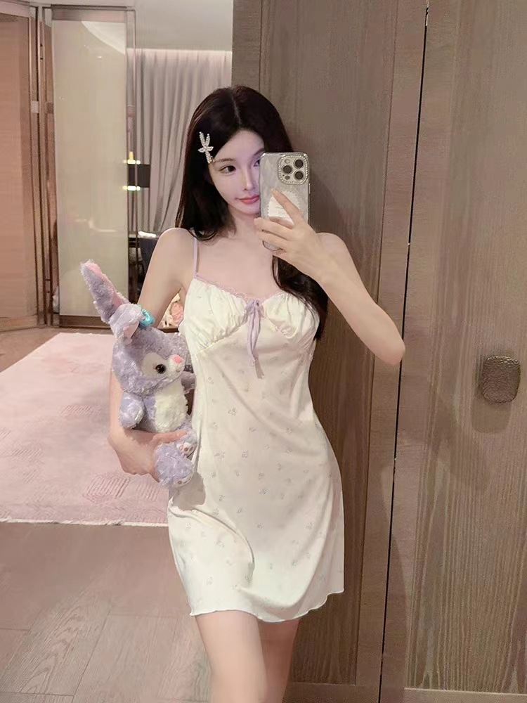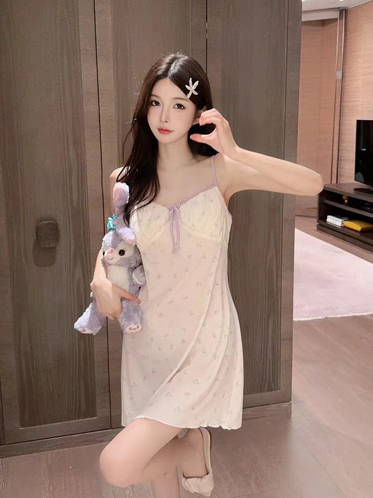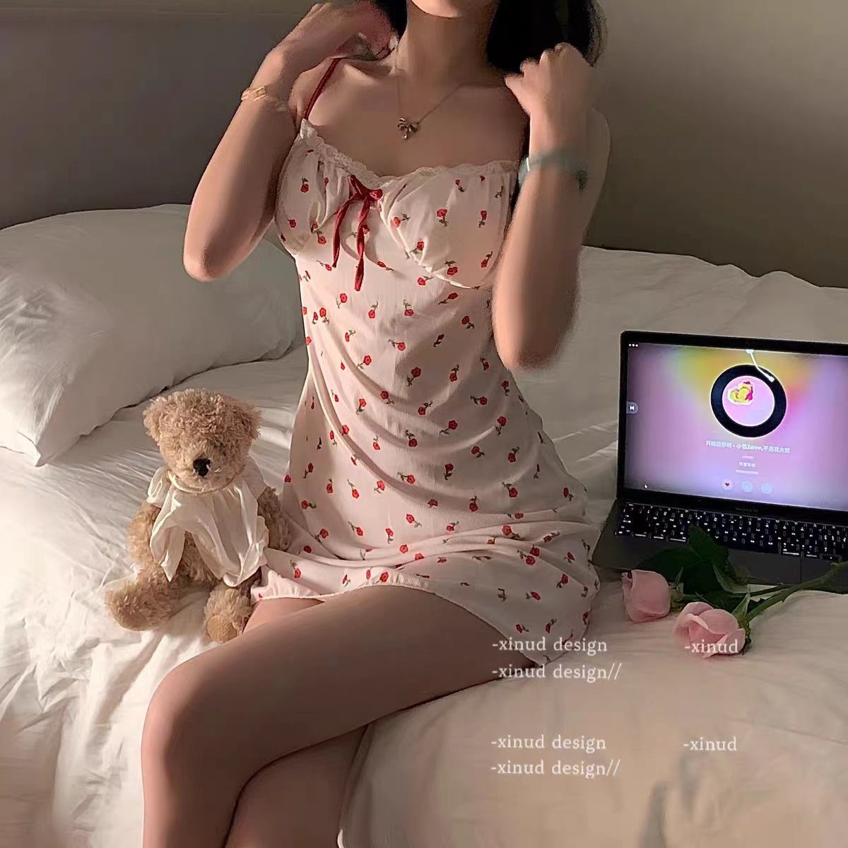플러스 사이즈 순수한 욕망 꽃 치마 체리 슬링 인쇄 된 잠옷 요정 스타일 Ins 홈 의류 신선한 여름 잠옷스토어 가기