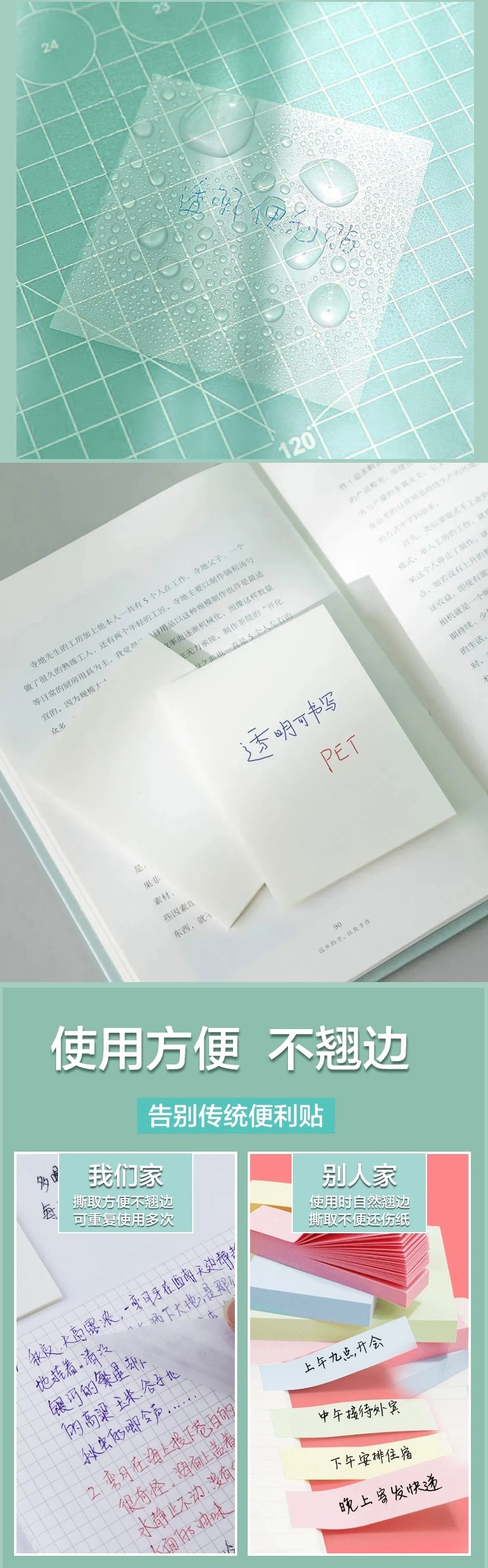 애완 동물 투명한 포스트잇 노트 노트 노트 노트 방수 관점 커버되지 않은 내부 스타일 시리즈스토어 가기