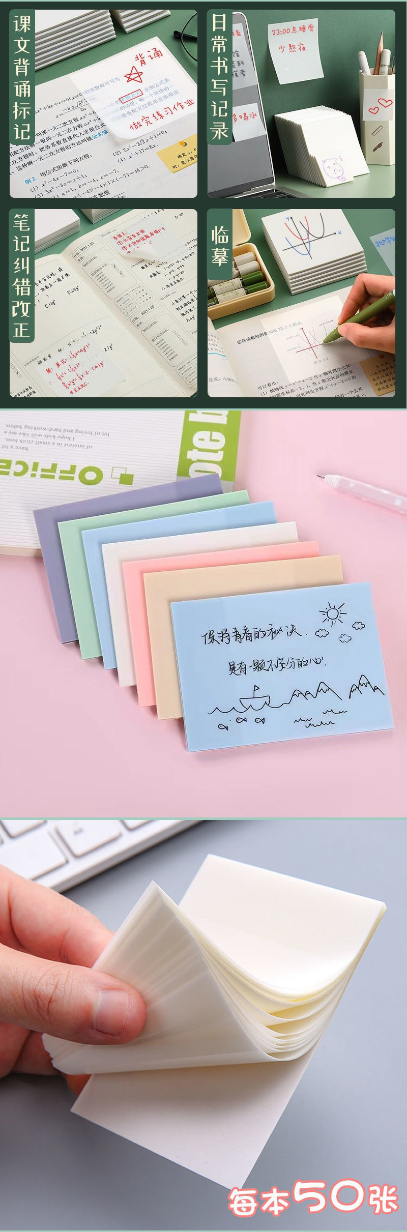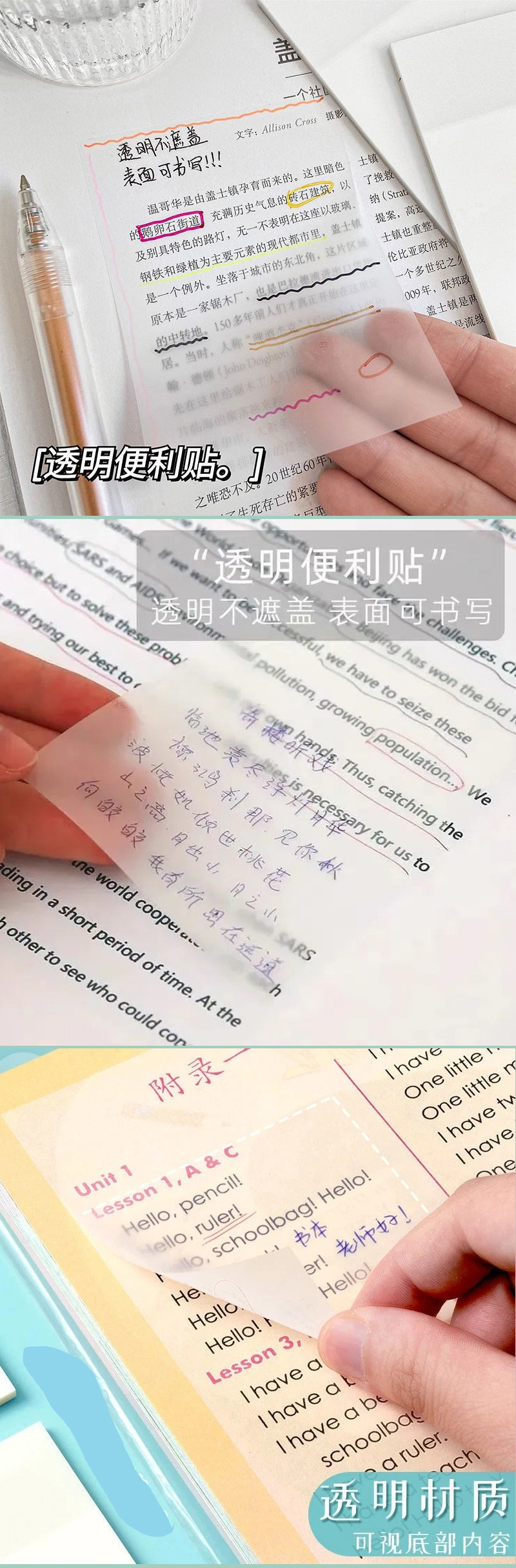 애완 동물 투명한 포스트잇 노트 노트 노트 노트 방수 관점 커버되지 않은 내부 스타일 시리즈