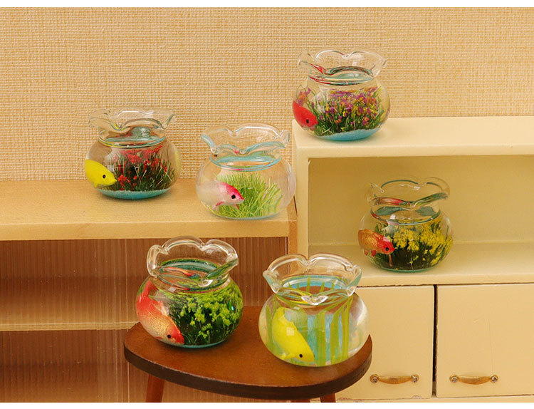 인형 집 미니 시뮬레이션 소형 유리 물고기 탱크 잉어 물고기 절묘한 모델 장식품 diy 장면 작은 액세서리스토어 가기