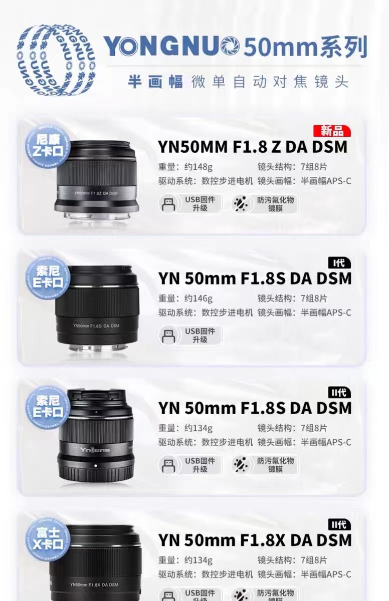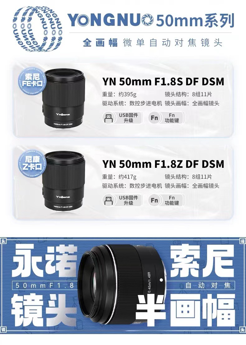 Yongnuo 50mmF1.8 2 세대 대형 조리개 자동 초상화 마이크로 싱글 소니 후지 니콘 Z 고정 초점 렌즈스토어 가기
