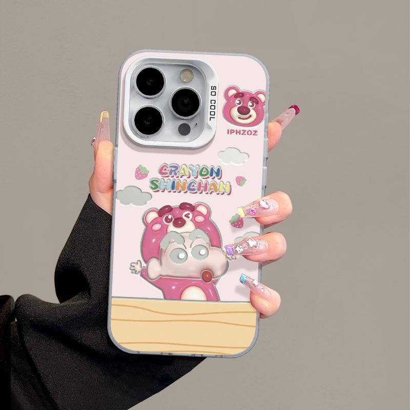 苹果15Promax彩银14/13/12新款个性维尼头小新创意防摔手机壳