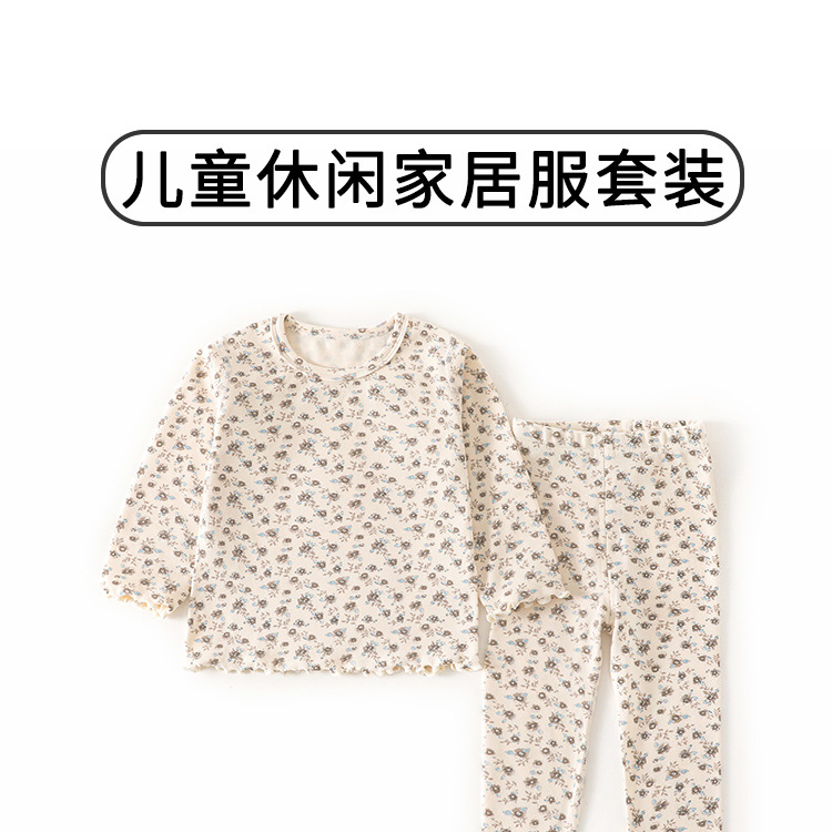 한국 스타일 Ins 스타일 소녀 가을 옷 긴 존스 세트 새 아기 소녀 작은 꽃 홈 옷 파자마 세트