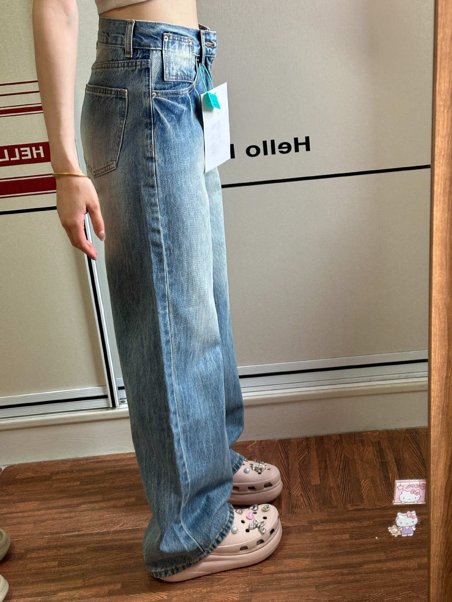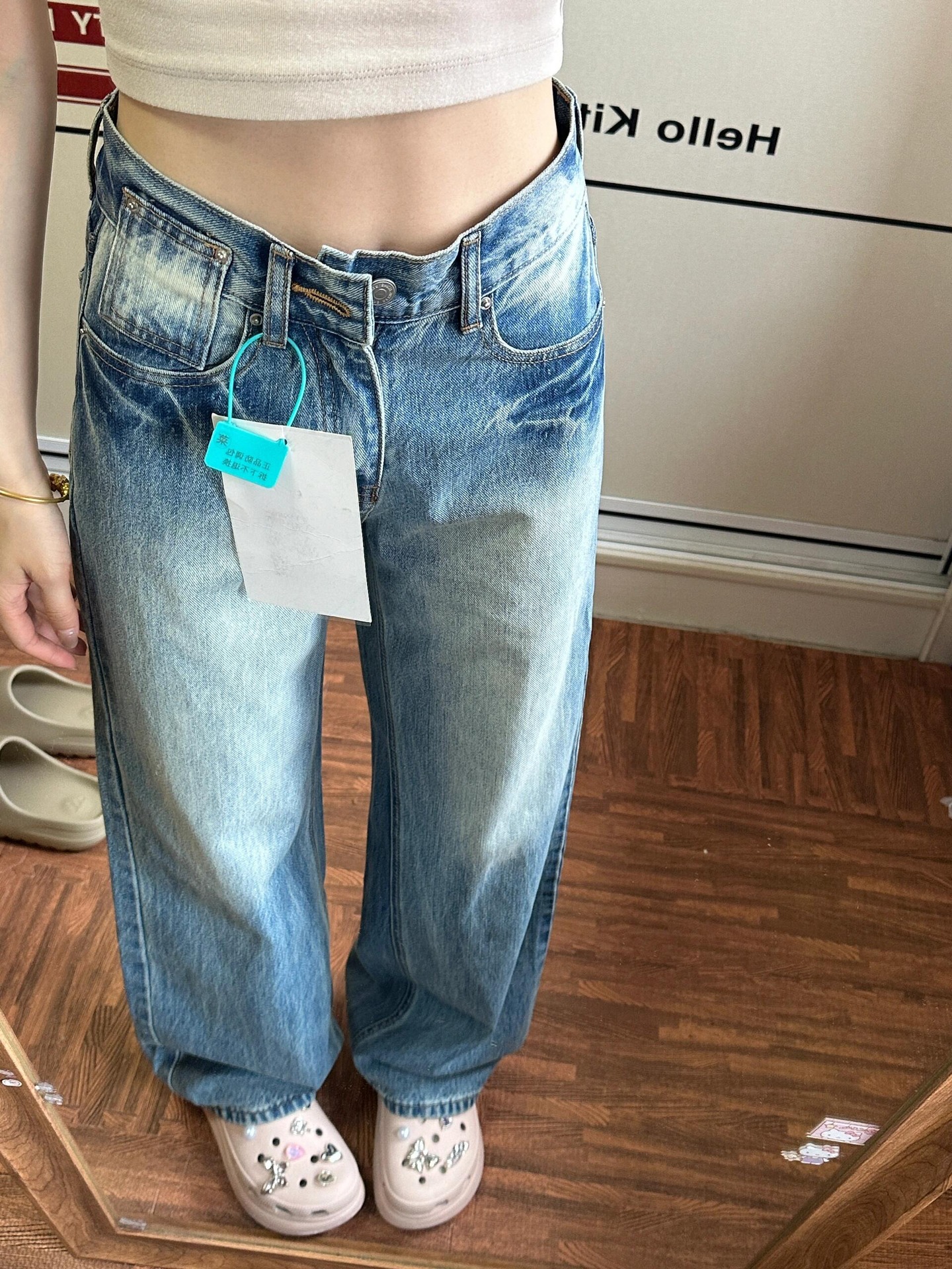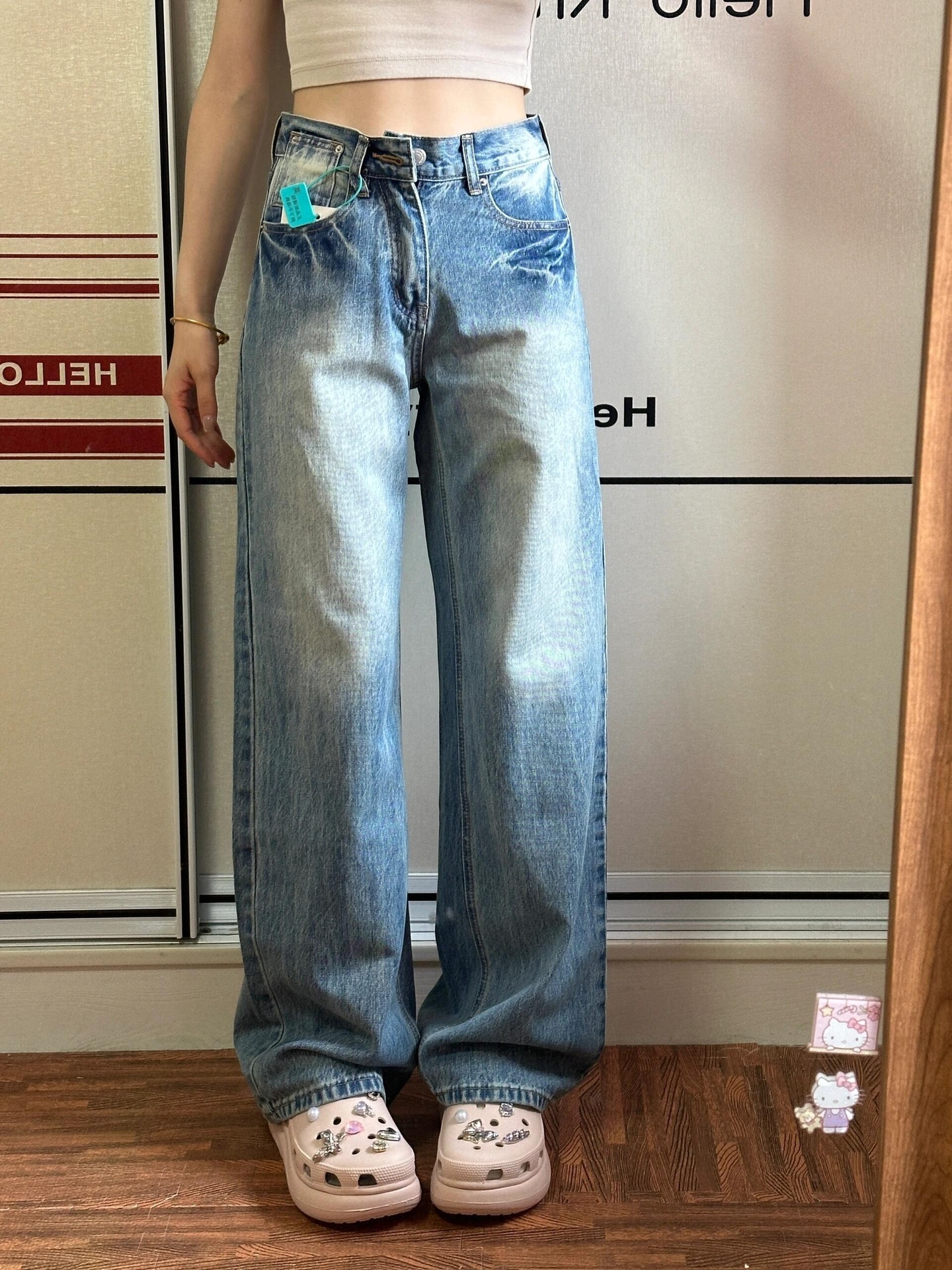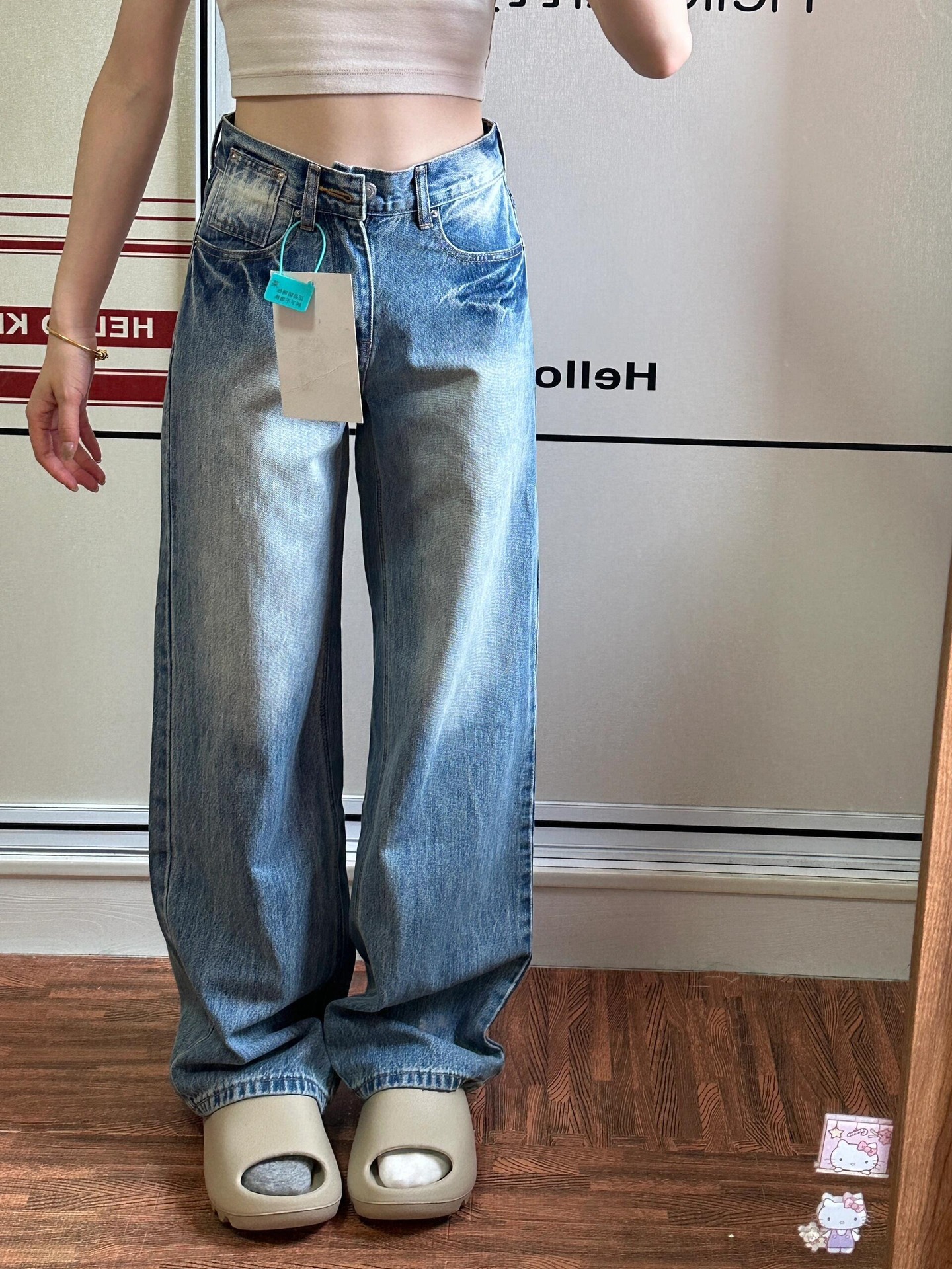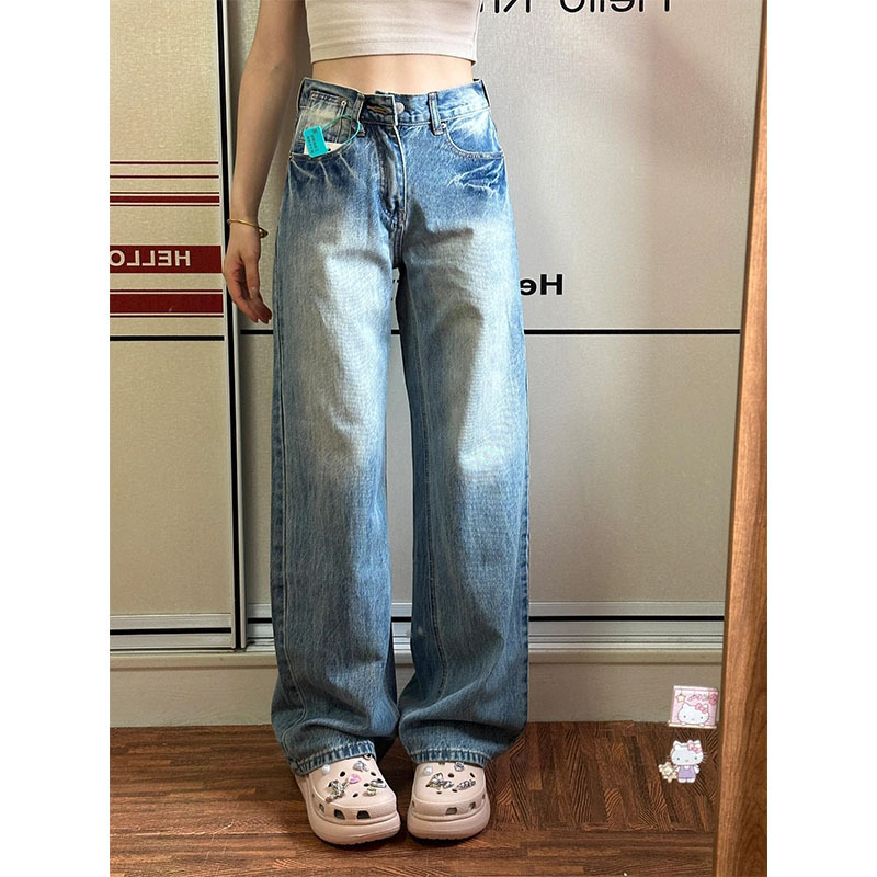 라이트 블루 찢어진 청바지 여자 여름 새로운 높은 허리 느슨한 넓은 다리 슬리밍 올 매치 딥 스트레이트 롱 팬츠스토어 가기